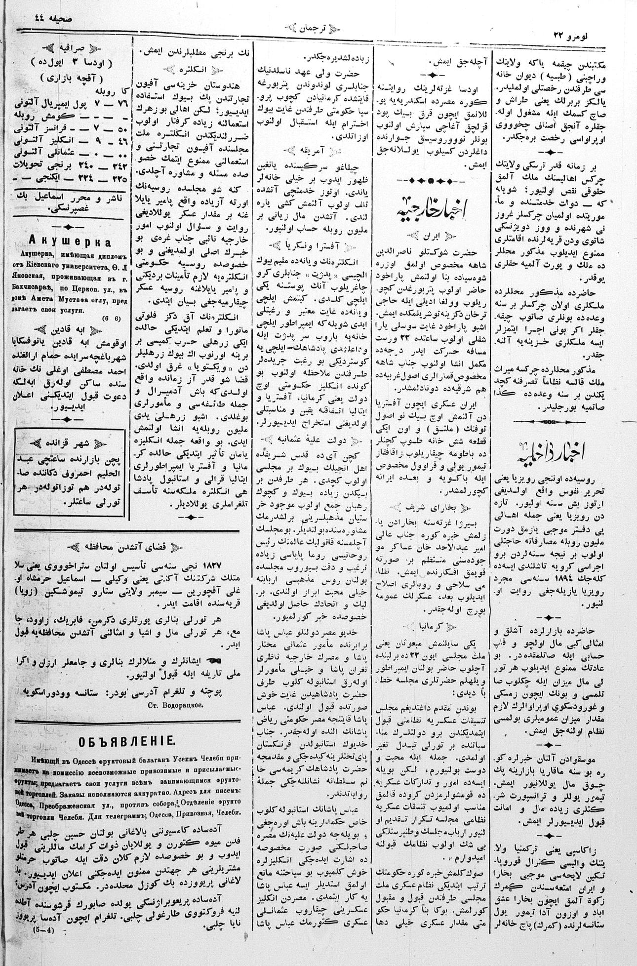 Turkish-Russian newspaper published in Crimea by İsmail Gaspıralı.