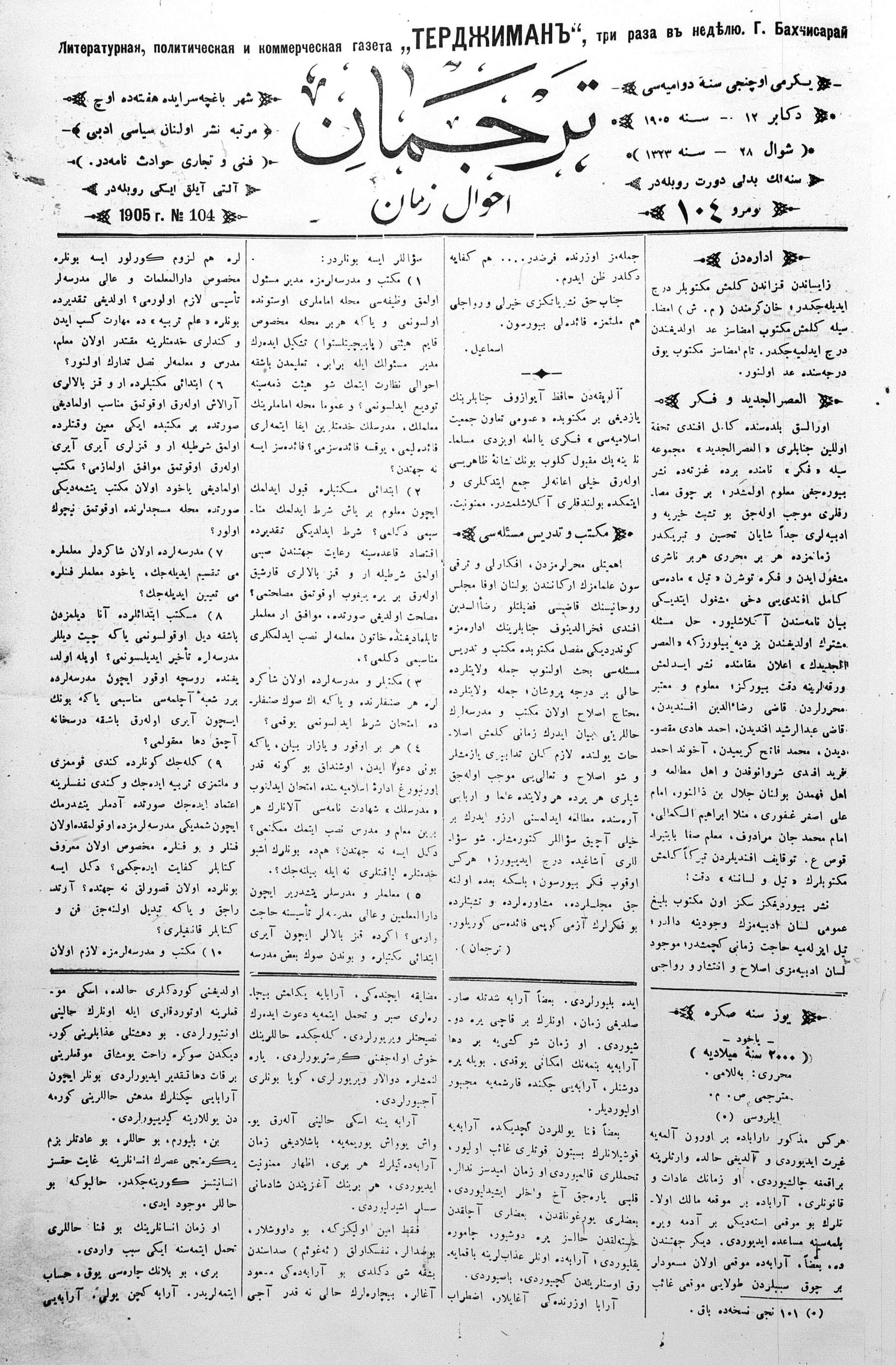 Tercüman, 12 December 1905 Year 23 No 104