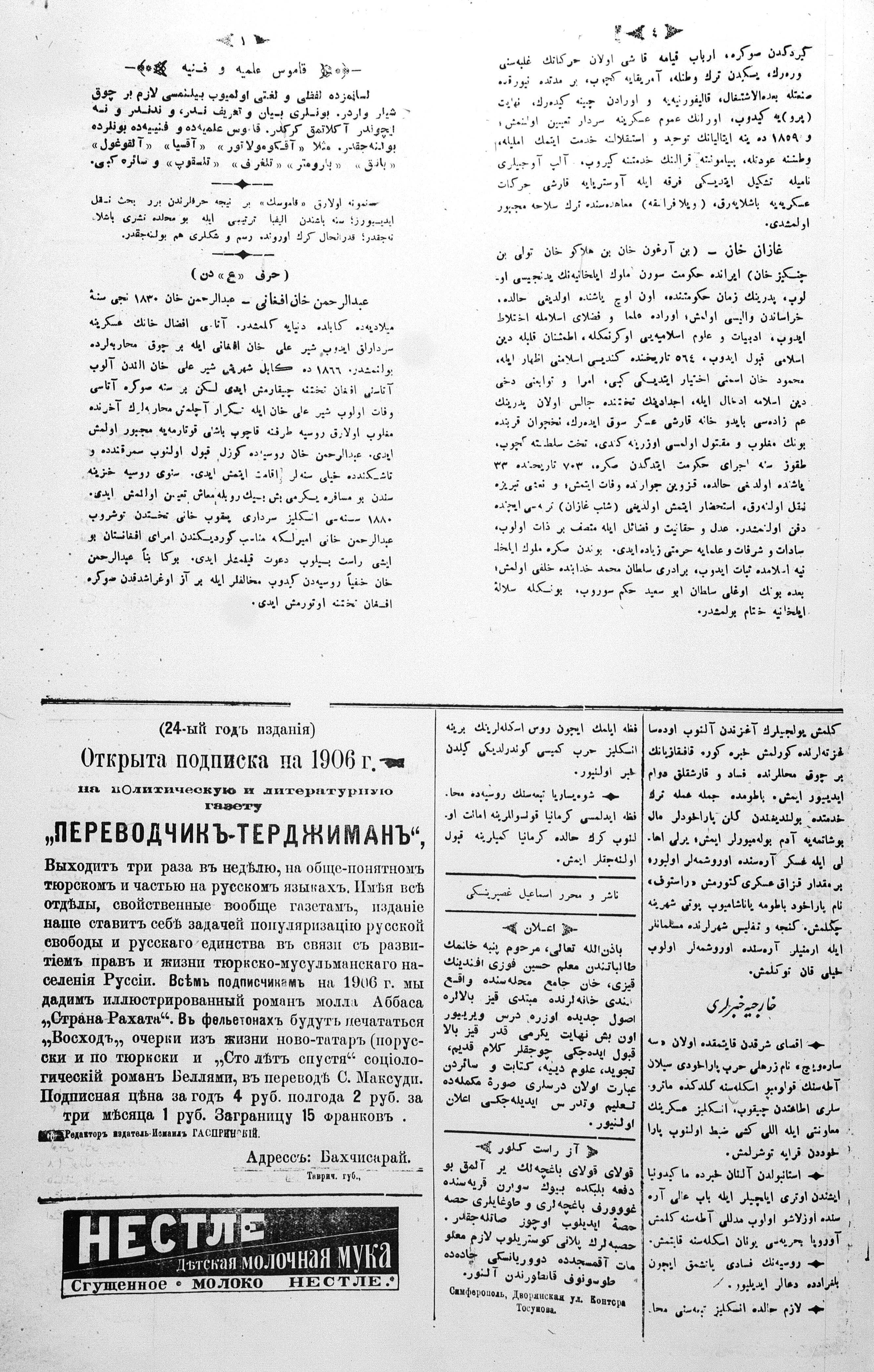 Turkish-Russian newspaper published in Crimea by İsmail Gaspıralı.