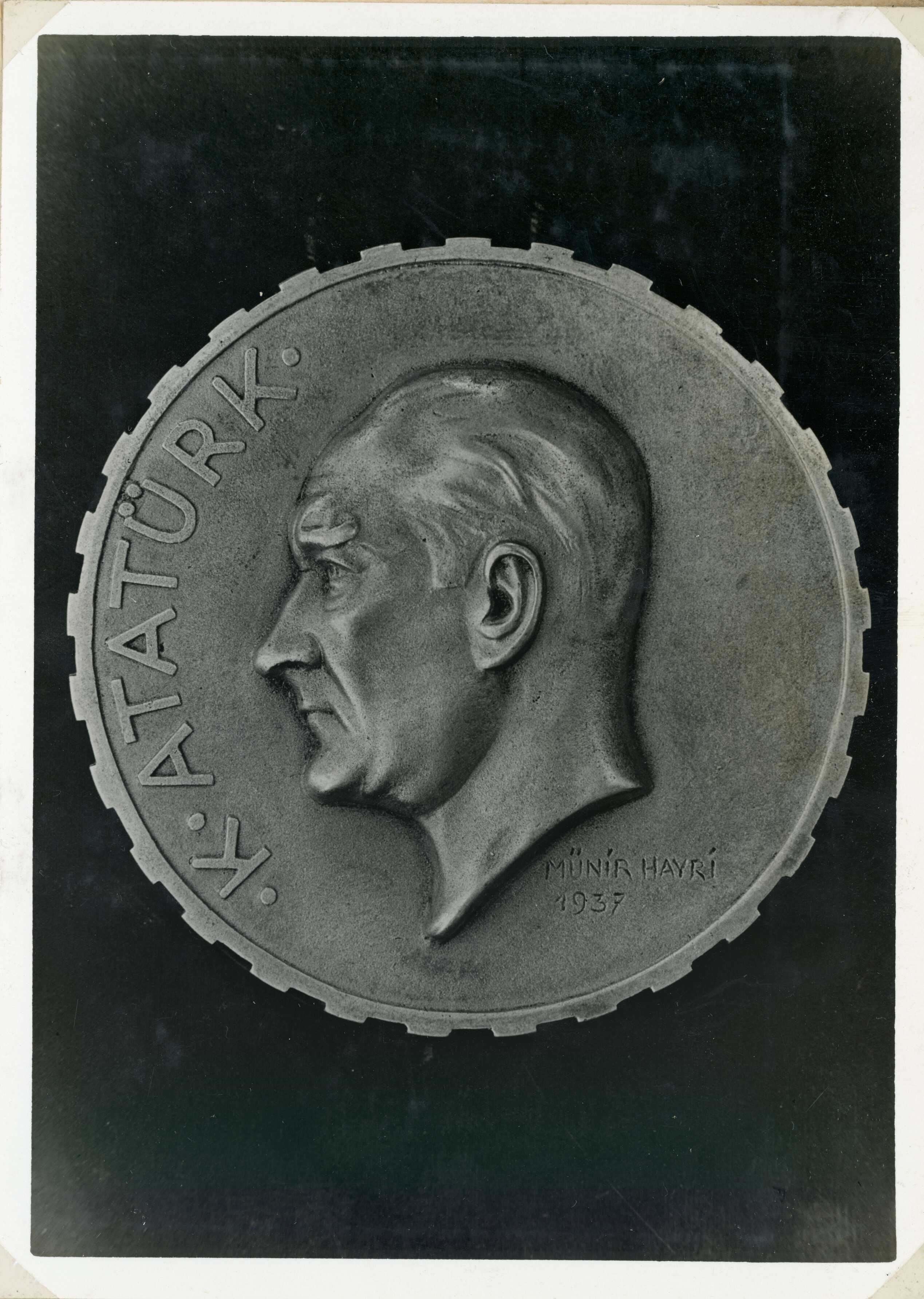 Münir Hayri'nin tasarladığı Enternasyonel Kömür Sergisi'nin hatıra amblemi’nin Atatürk’ün resmi bulunan diğer yüzü