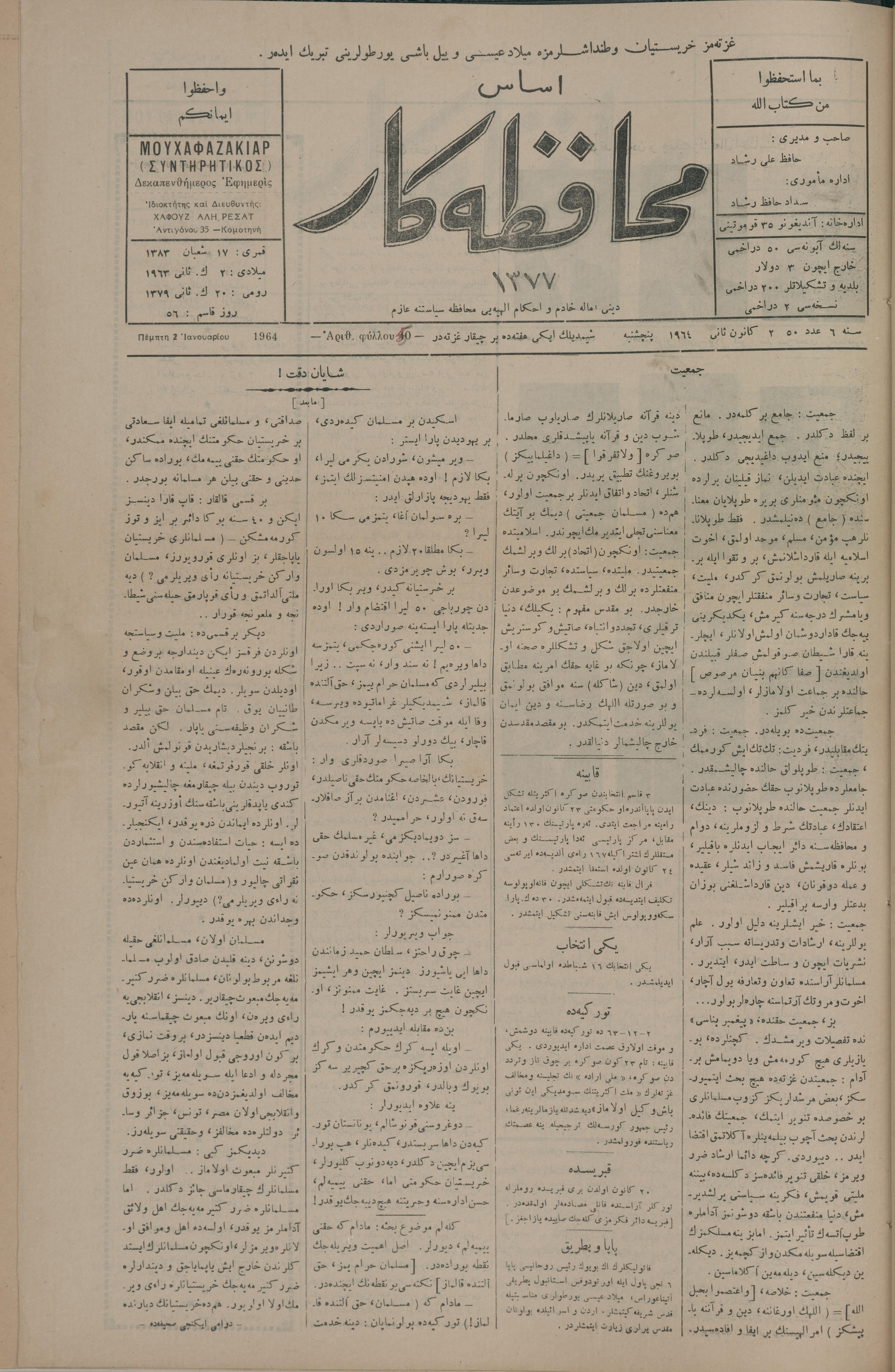 Esas muhafazakâr 1377, 2 Ocak 1964 Sene 6 Aded 50
