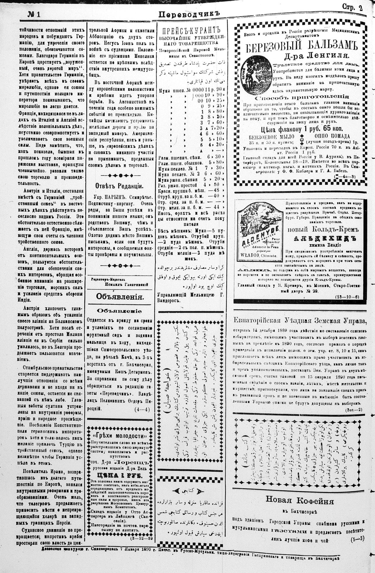 Tercüman, 08 January 1890 Year 8 No 1