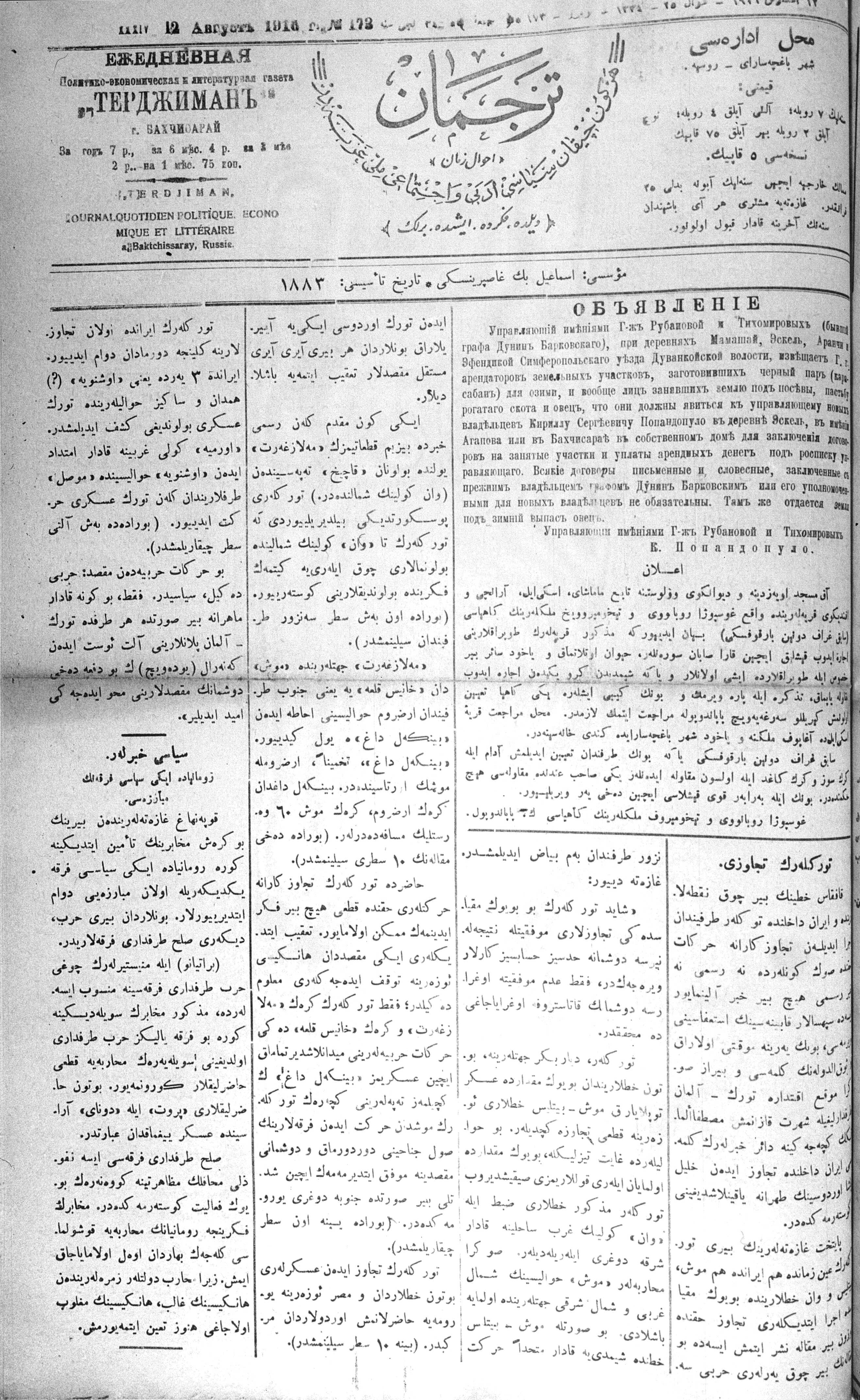 Turkish-Russian newspaper published in Crimea by İsmail Gaspıralı.