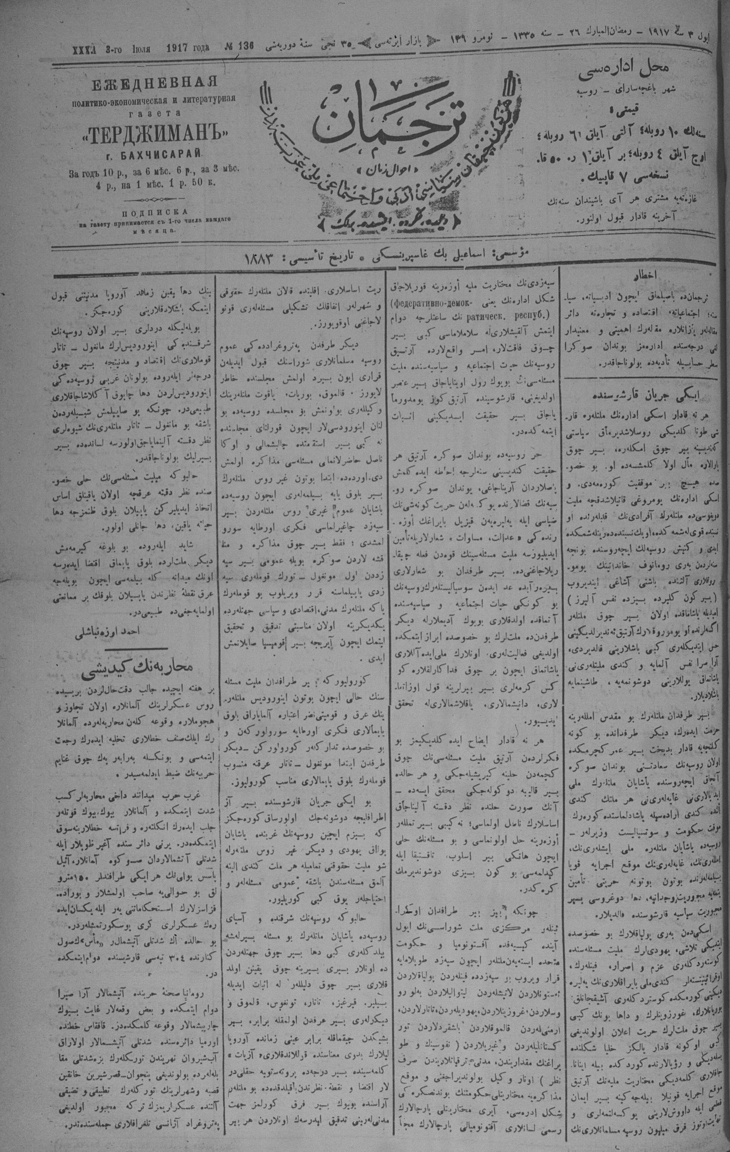 Turkish-Russian newspaper published in Crimea by İsmail Gaspıralı.