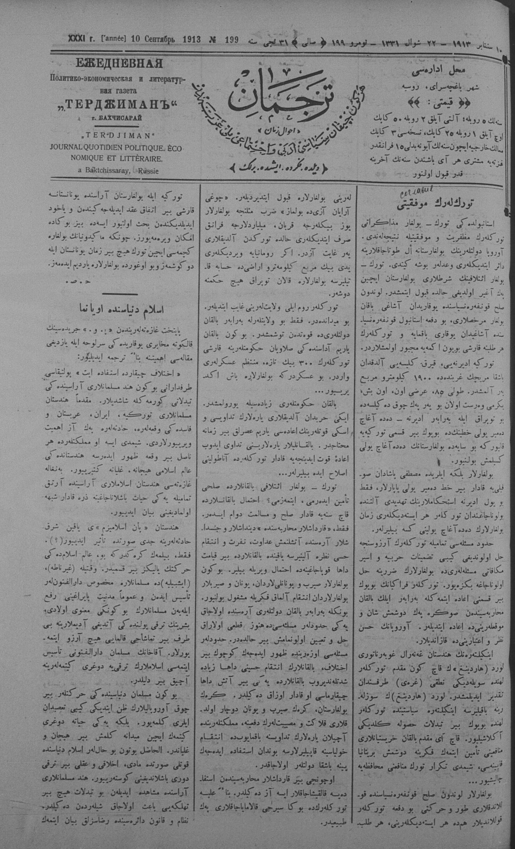 Tercüman, 10 September 1913 Year 31 No 199