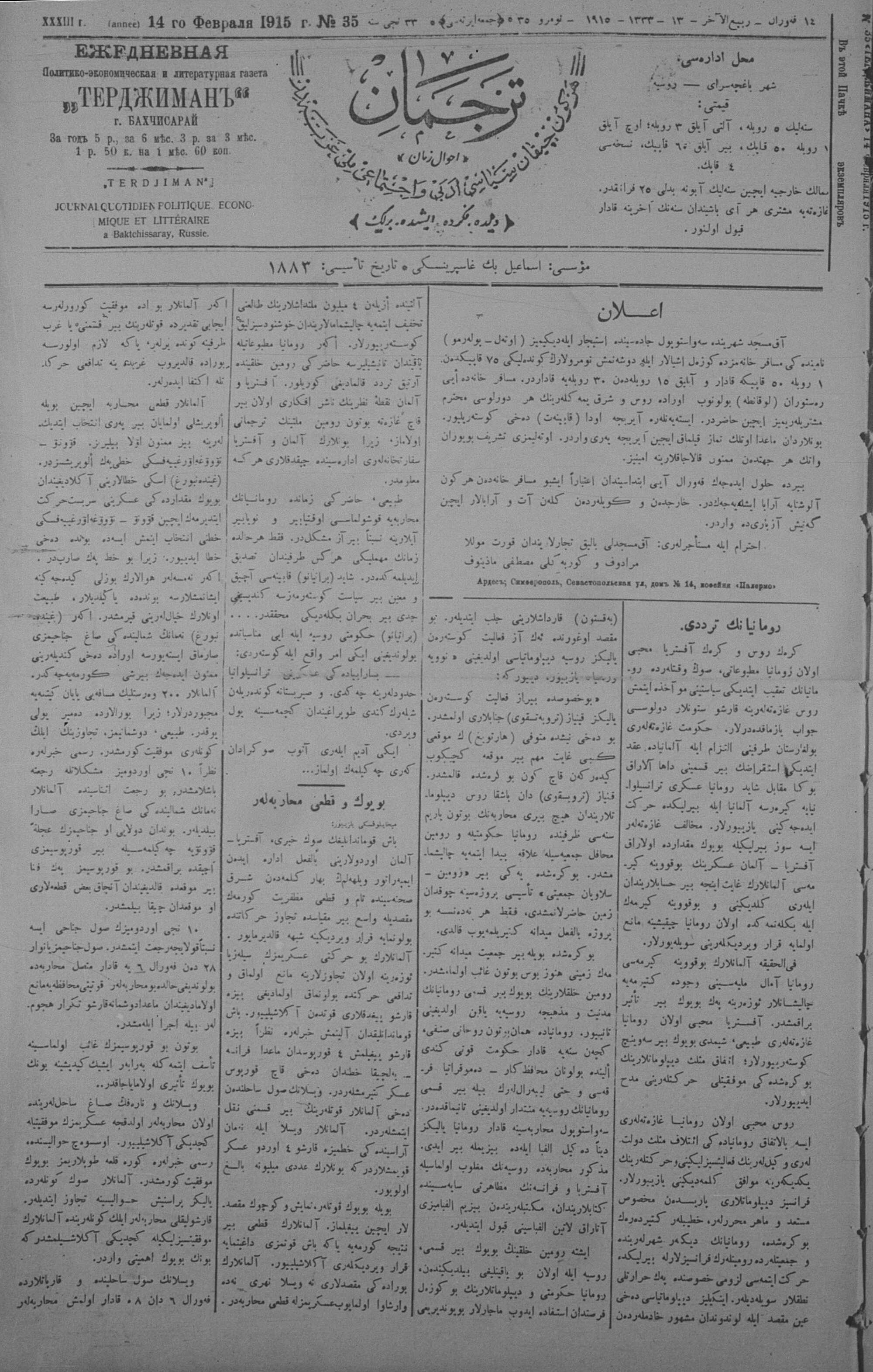 Tercüman, 14 February 1915 Year 33 No 35