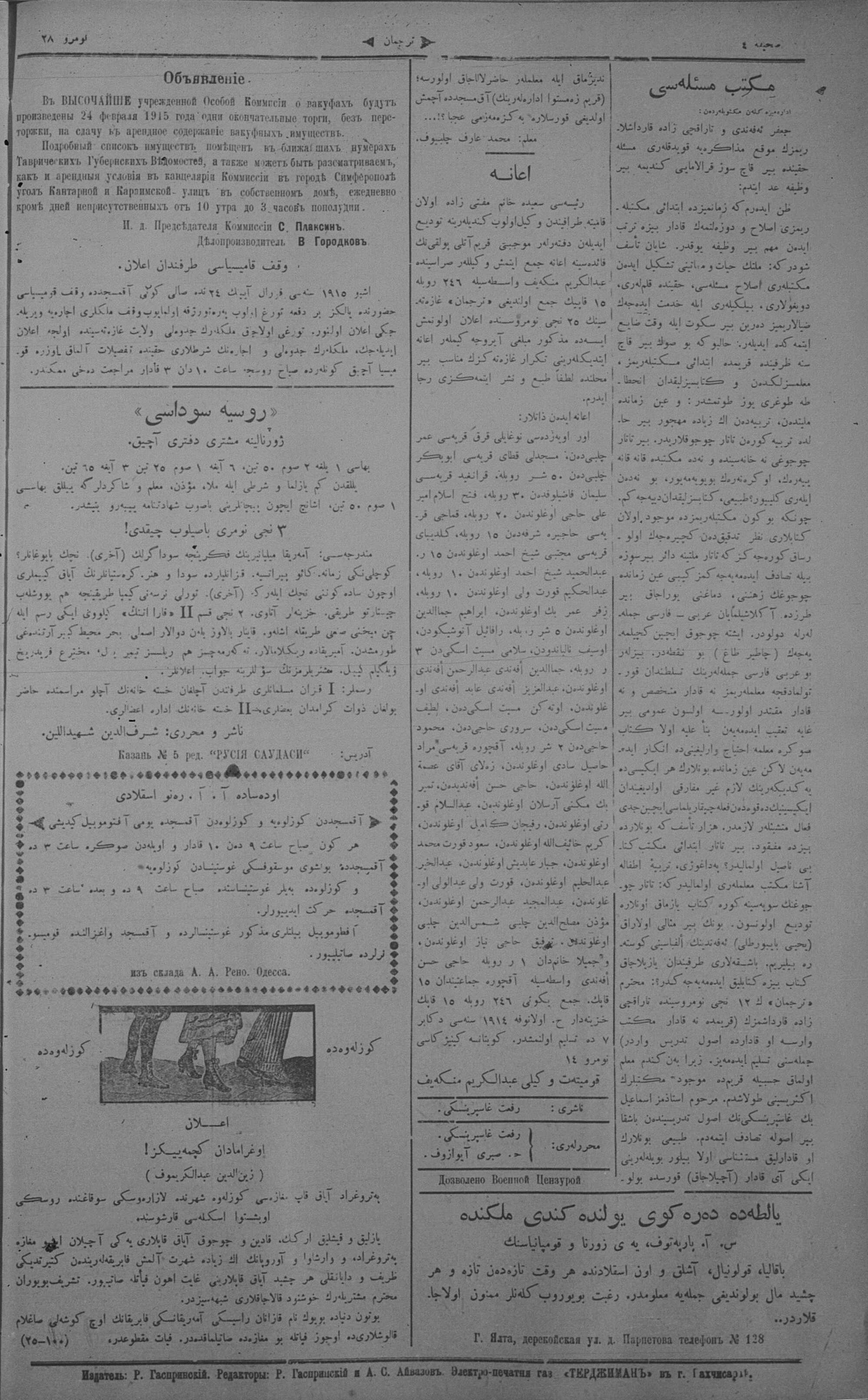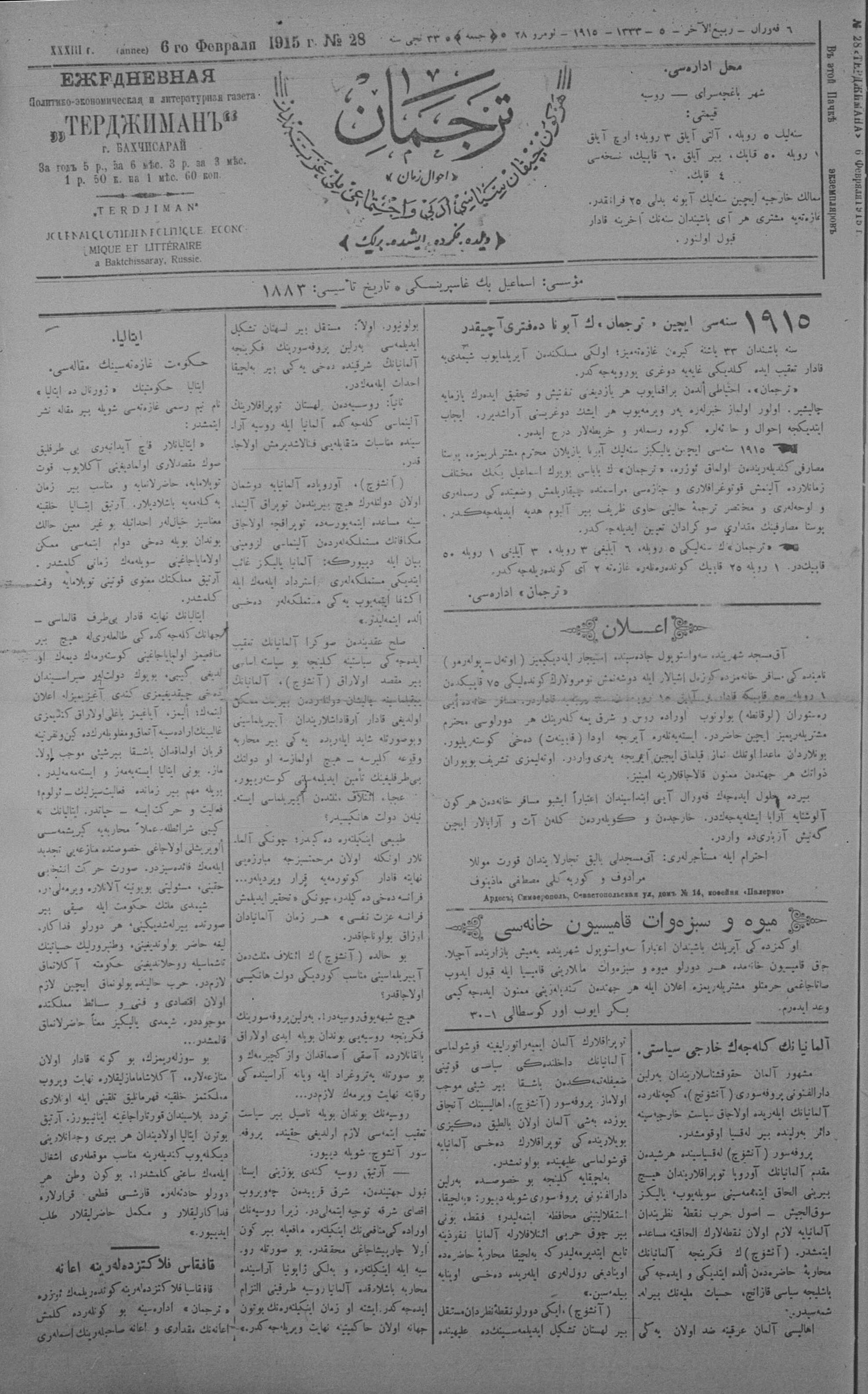 Turkish-Russian newspaper published in Crimea by İsmail Gaspıralı.
