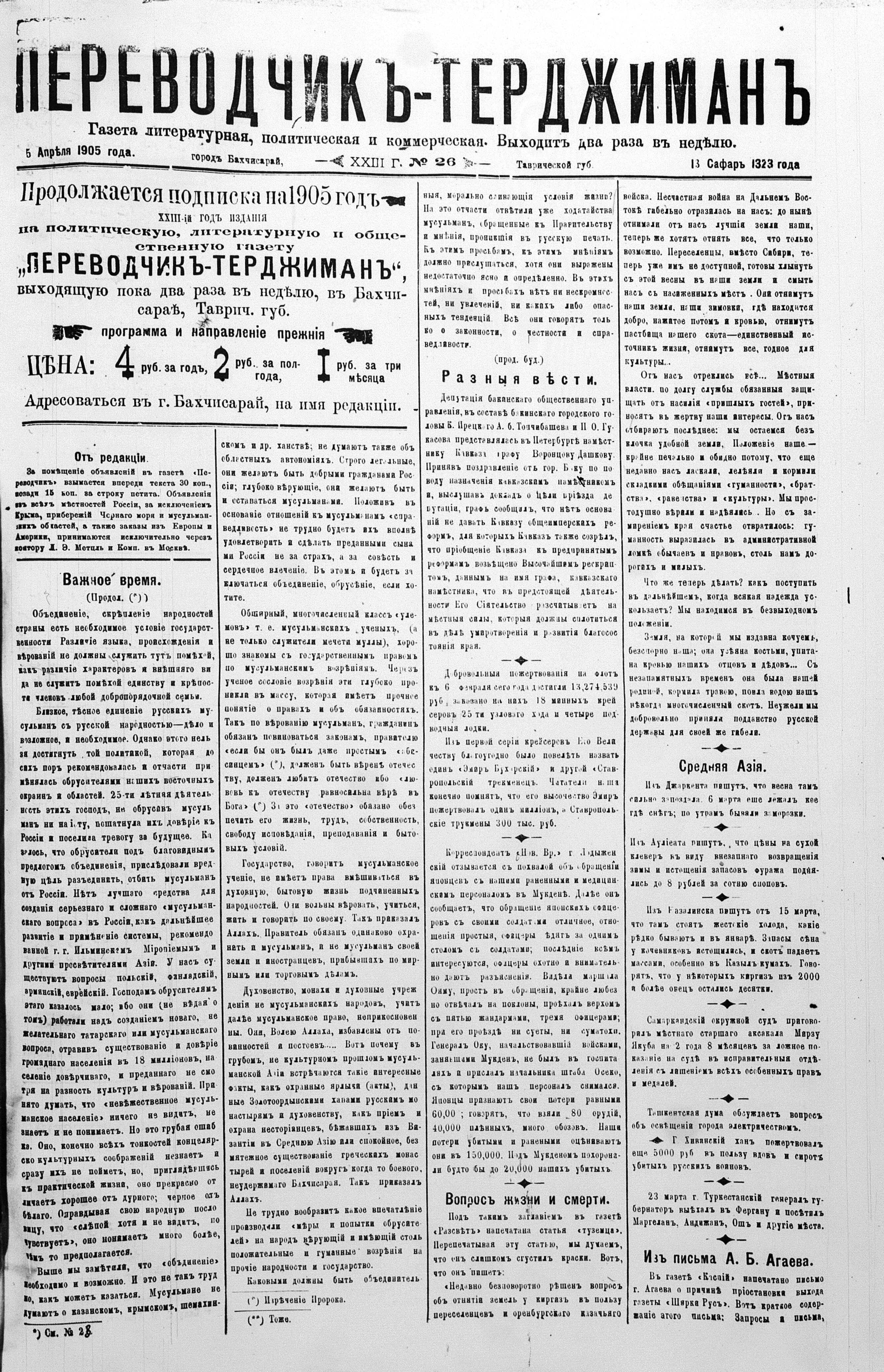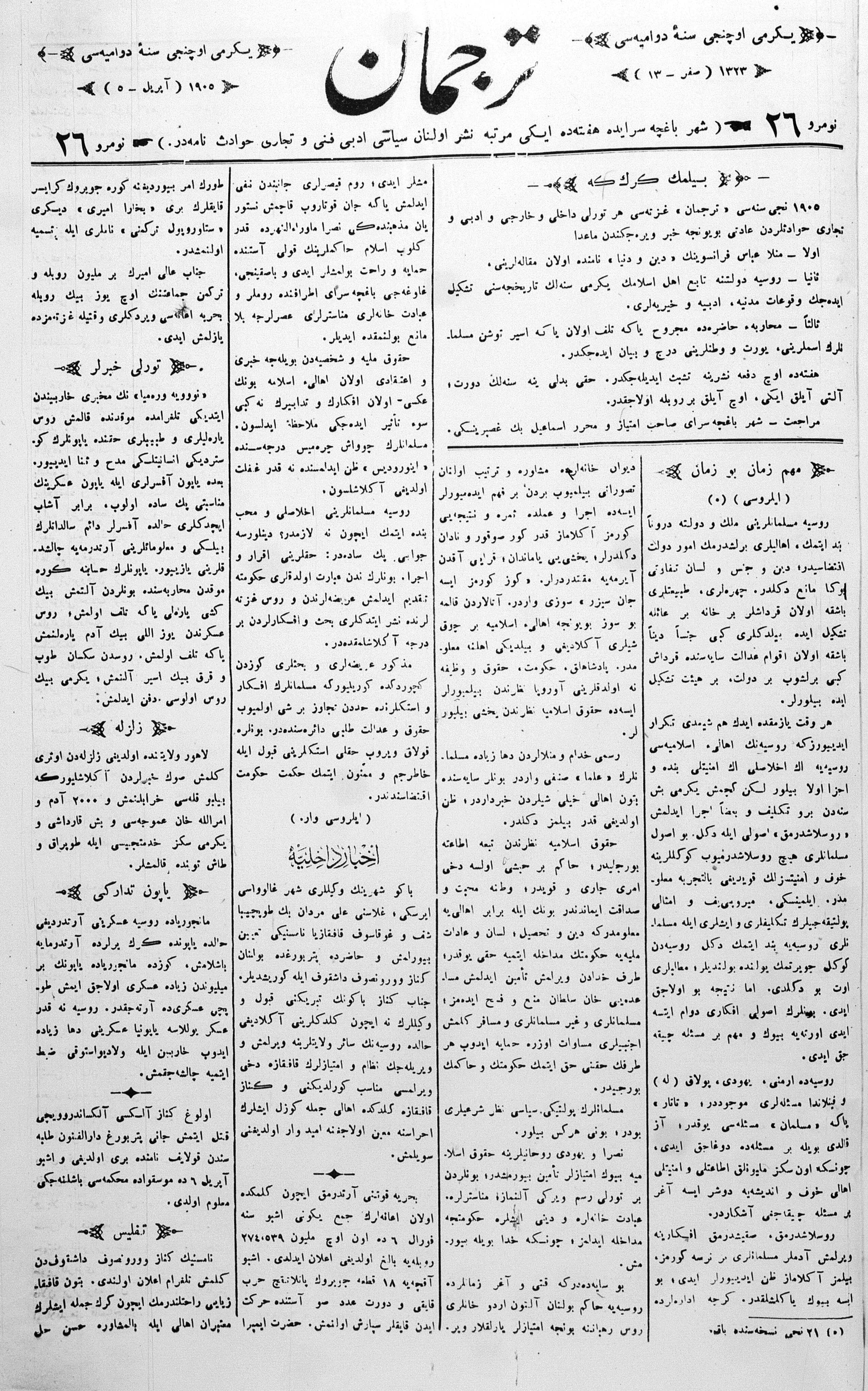 Tercüman, 05 April 1905 Year 23 No 26