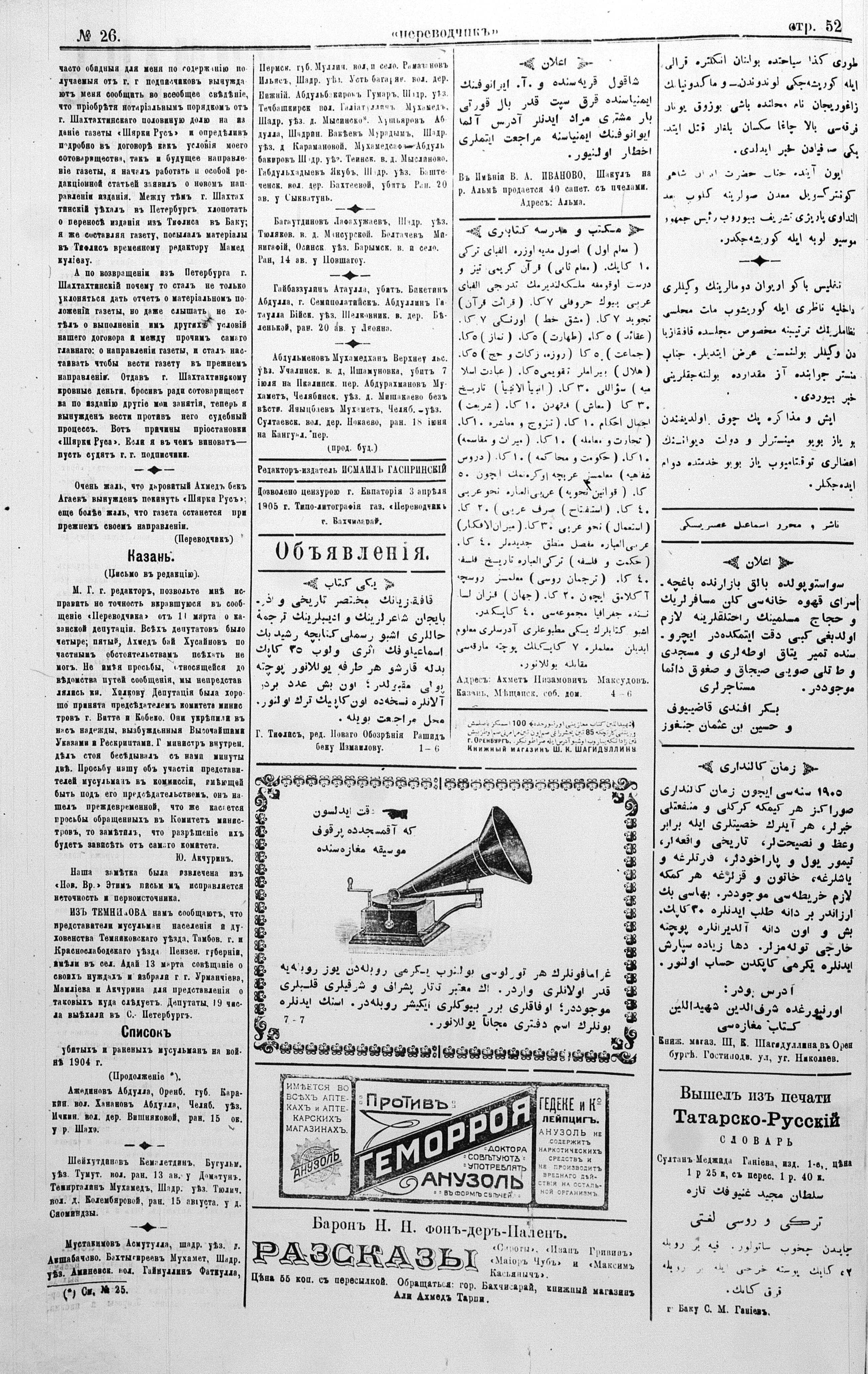 Different spellings of Tercüman: Terdzhiman, Terjuman, Perevodçik and Terjiman.
