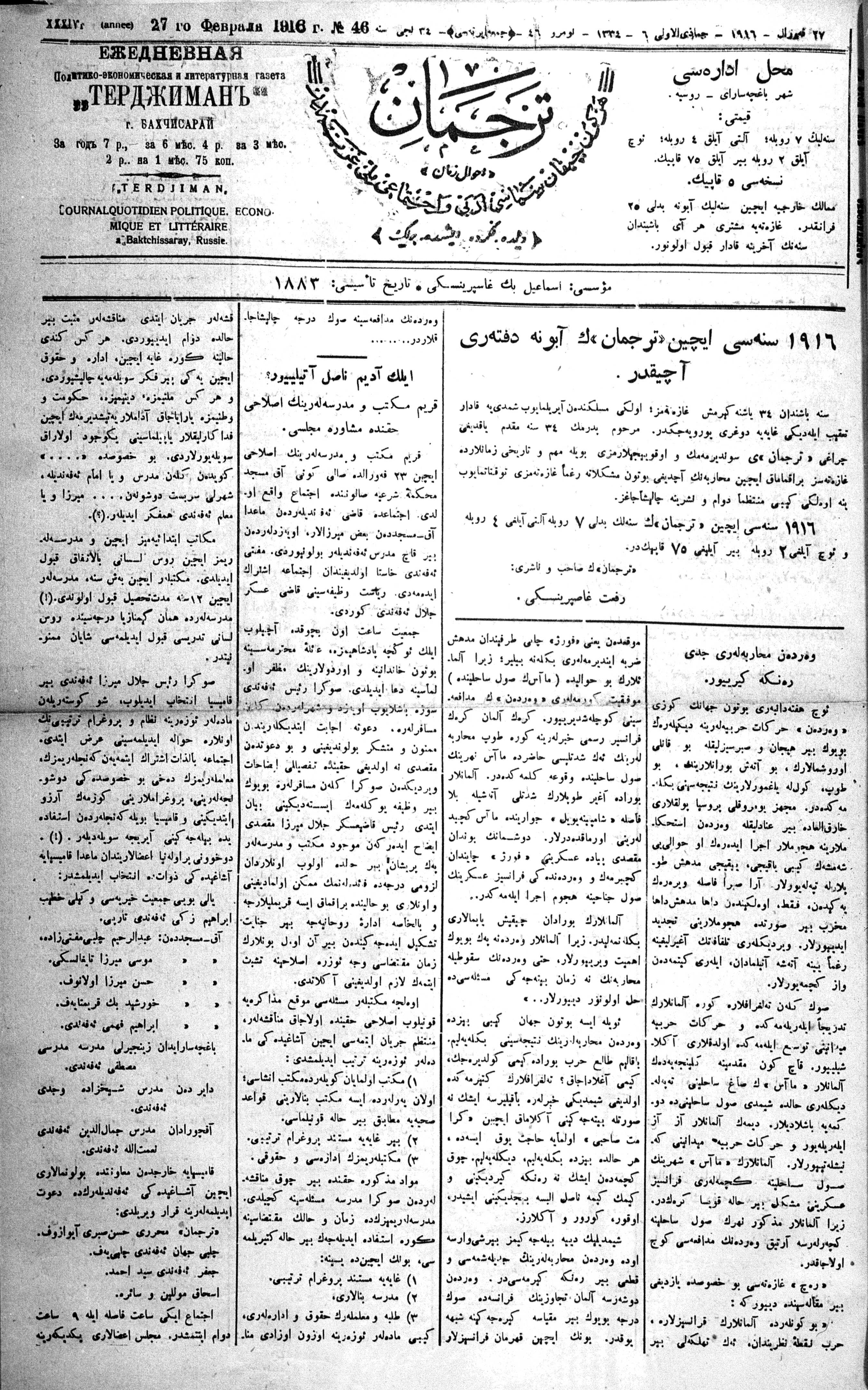 Tercüman, 27 February 1916 Year 34 No 46