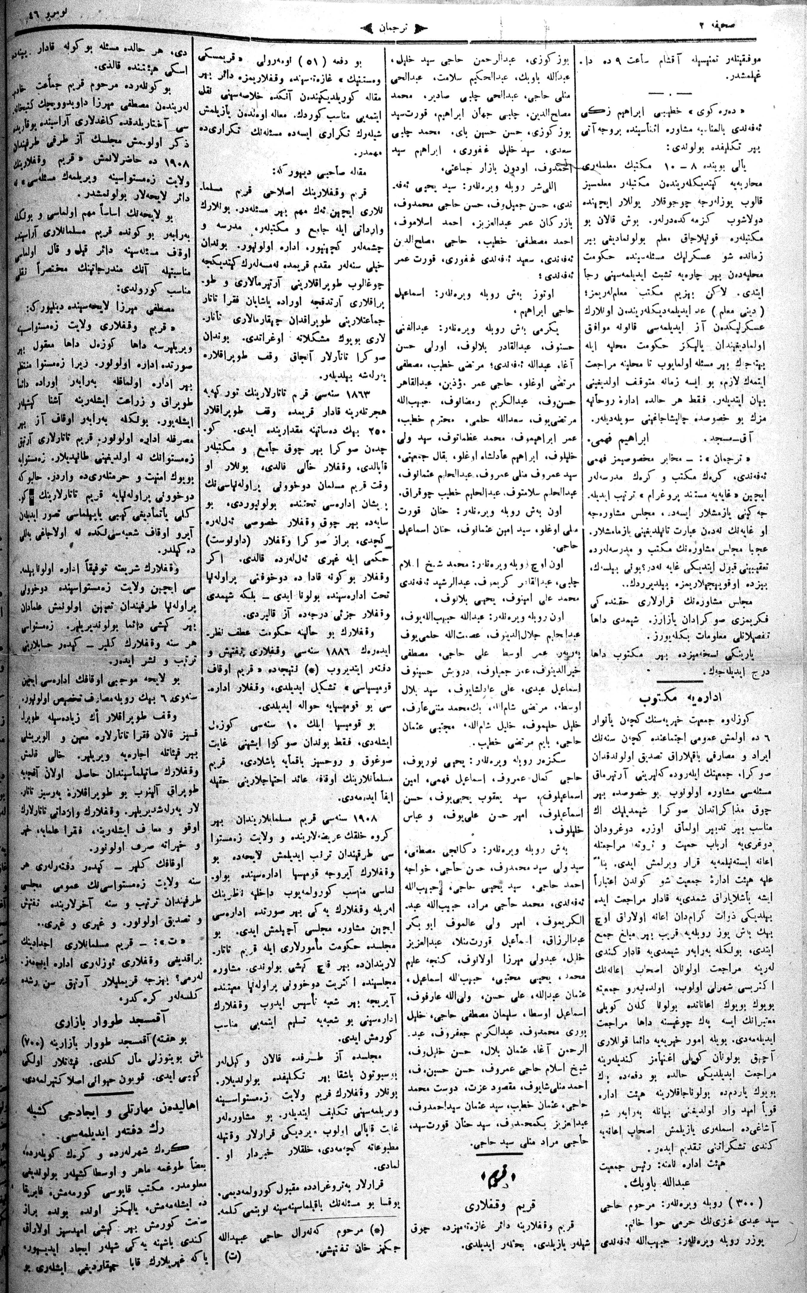 The name of the newspaper changed to Tercüman-ı Ahval-i Zaman in 1905. In 1909, it started to be published under its first name, Tercüman.