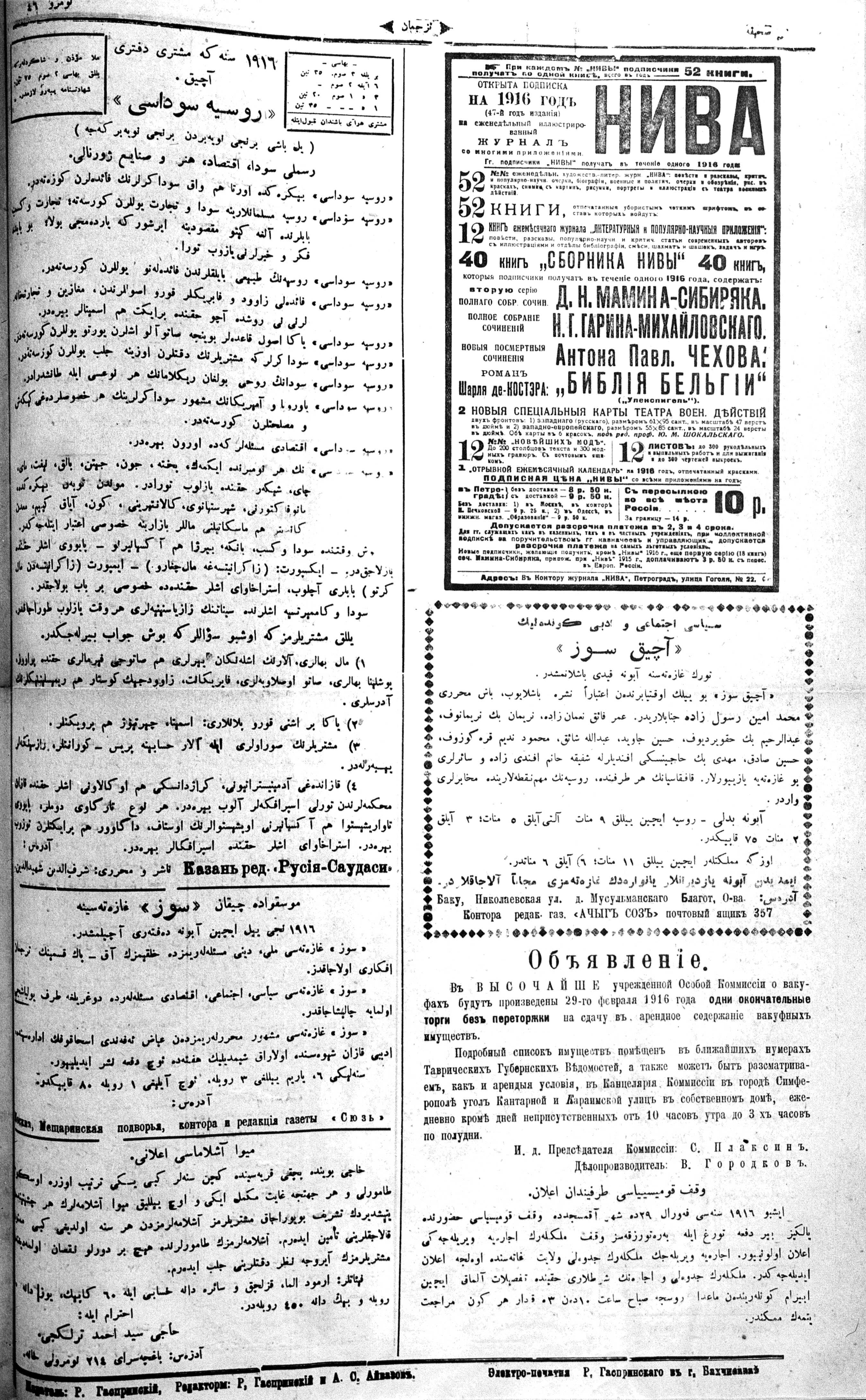 Turkish-Russian newspaper published in Crimea by İsmail Gaspıralı.