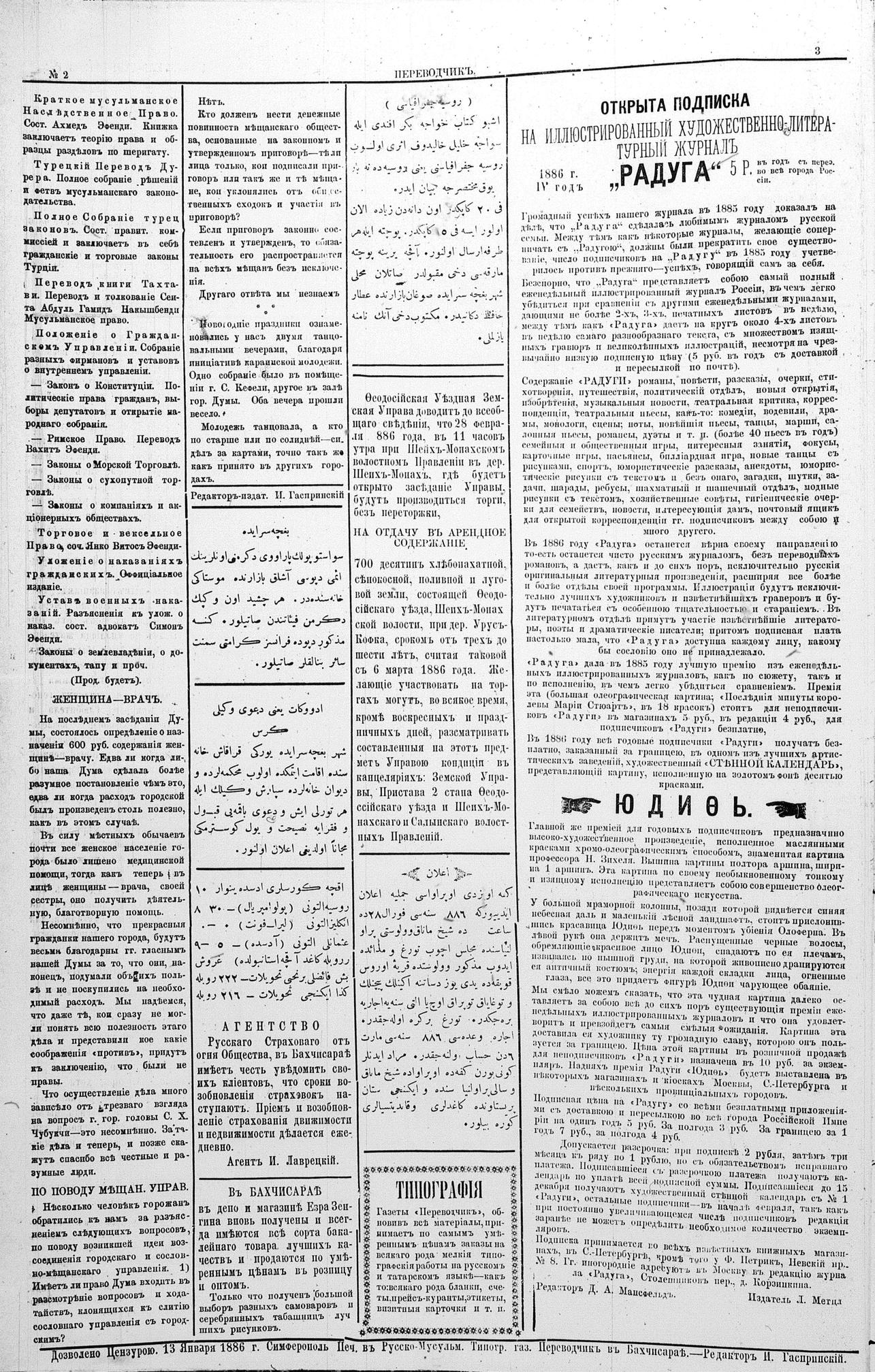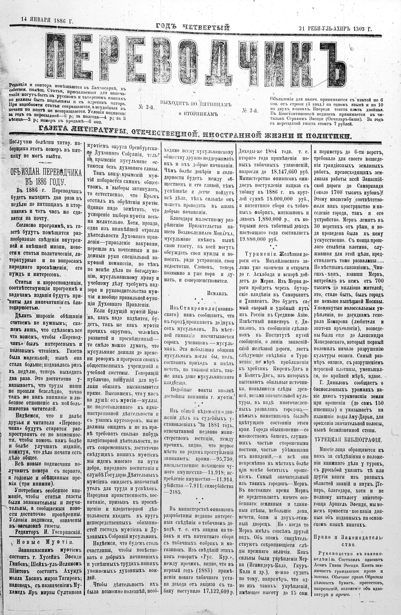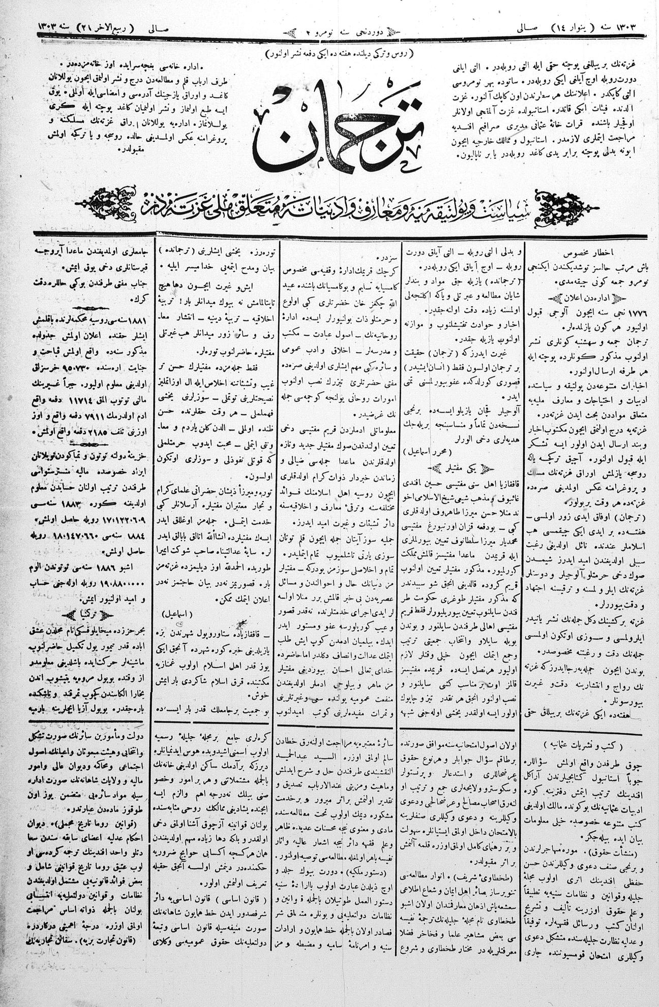 Tercüman, 14 January 1886 Year 4 No 2