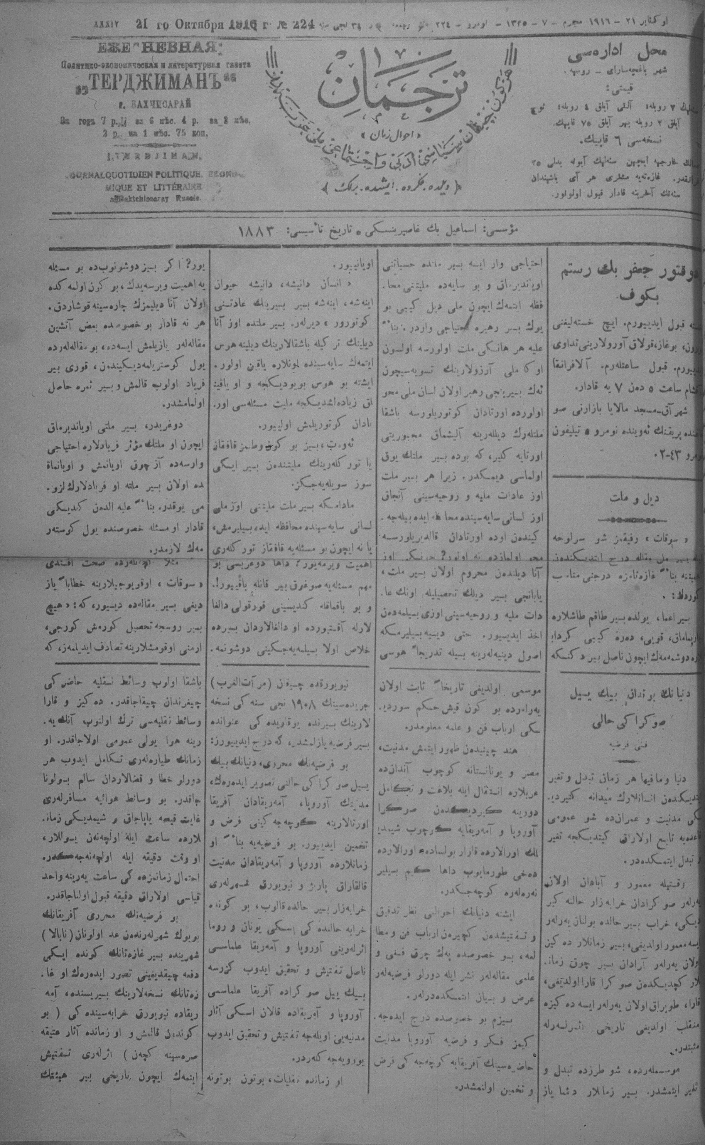 Tercüman, 21 October 1916 Year 34 No 224