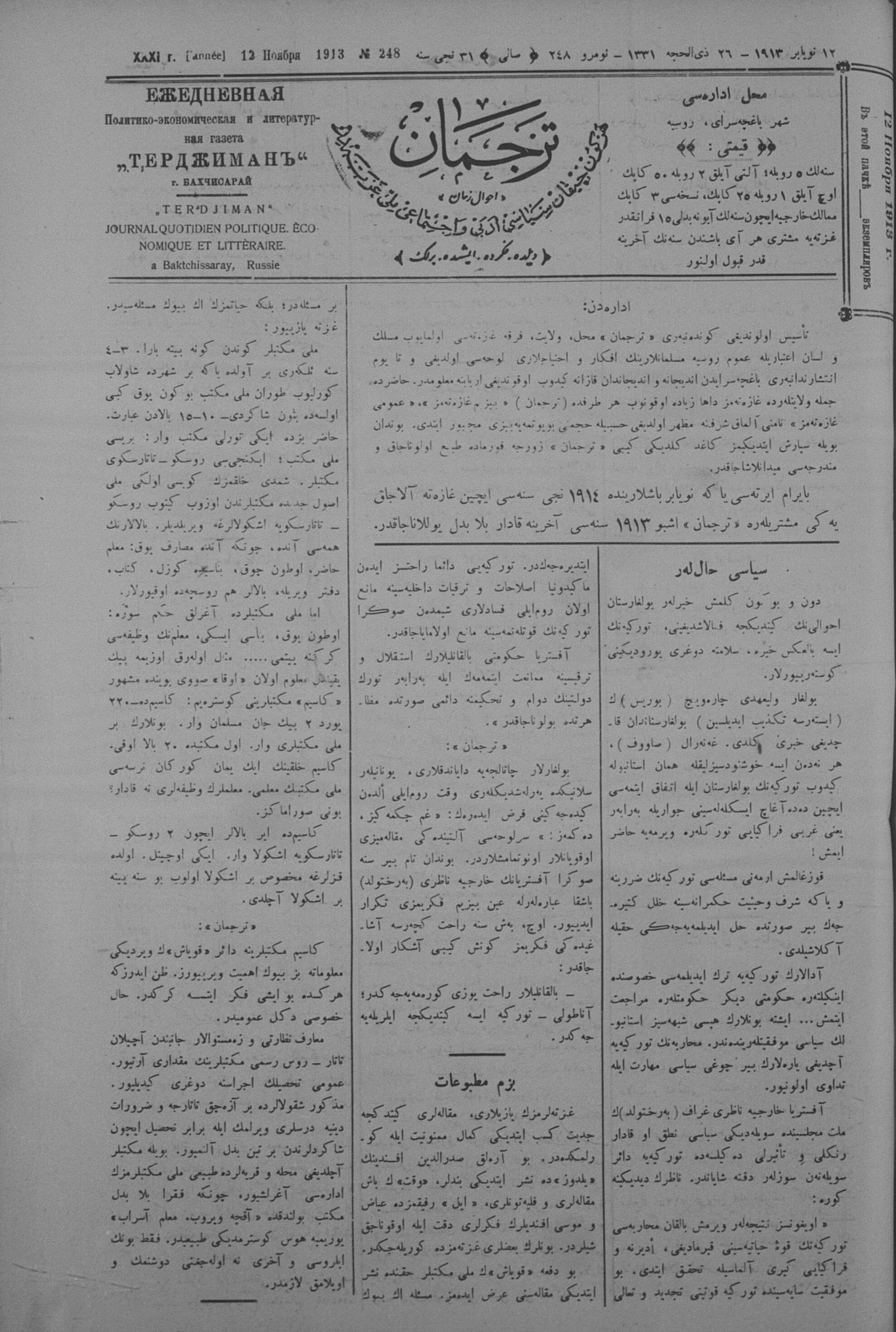 Tercüman, 12 November 1913 Year 31 No 248