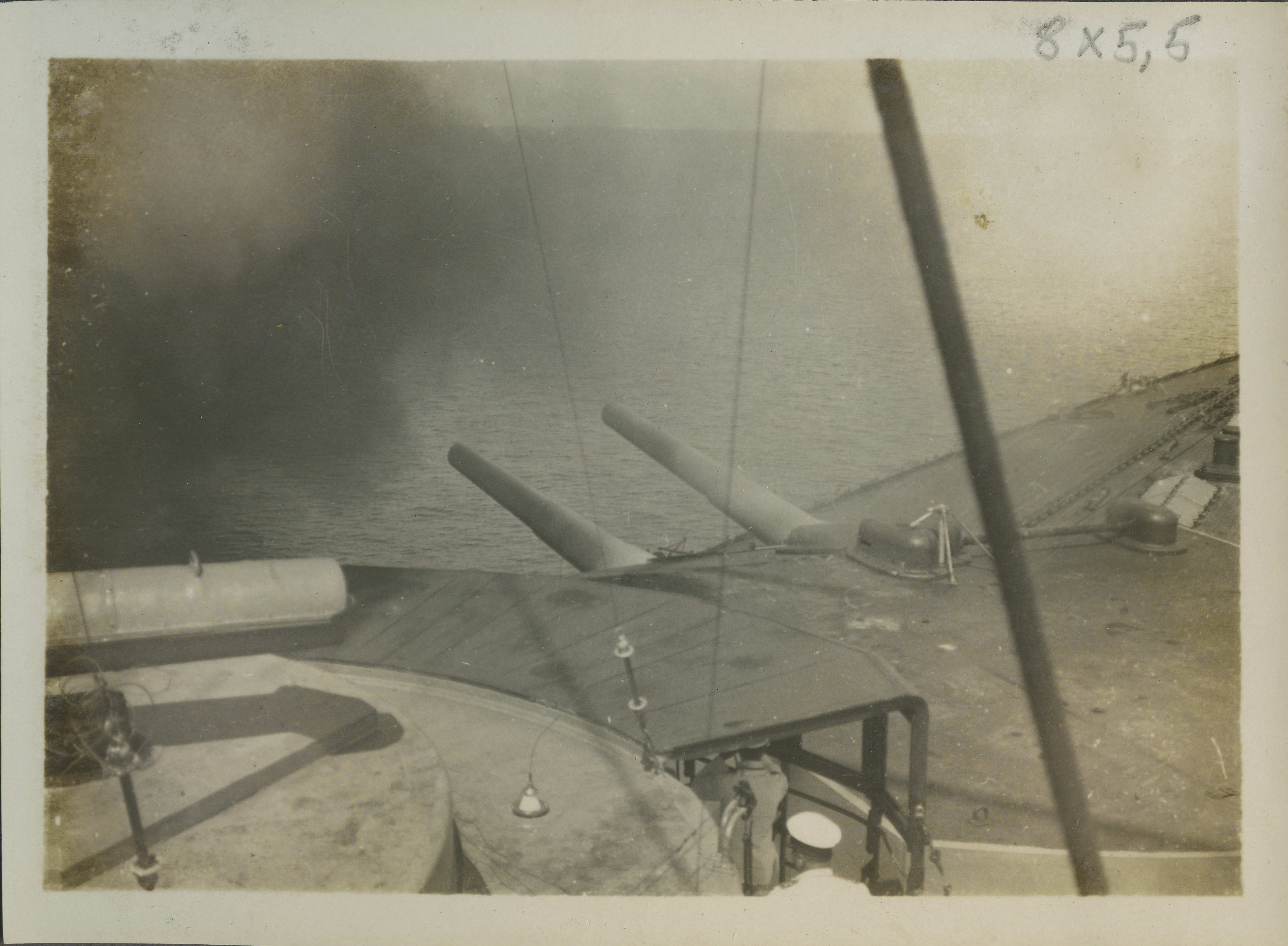 Deniz manevrasında Türk donanma gemilerinden birinde top atılırken