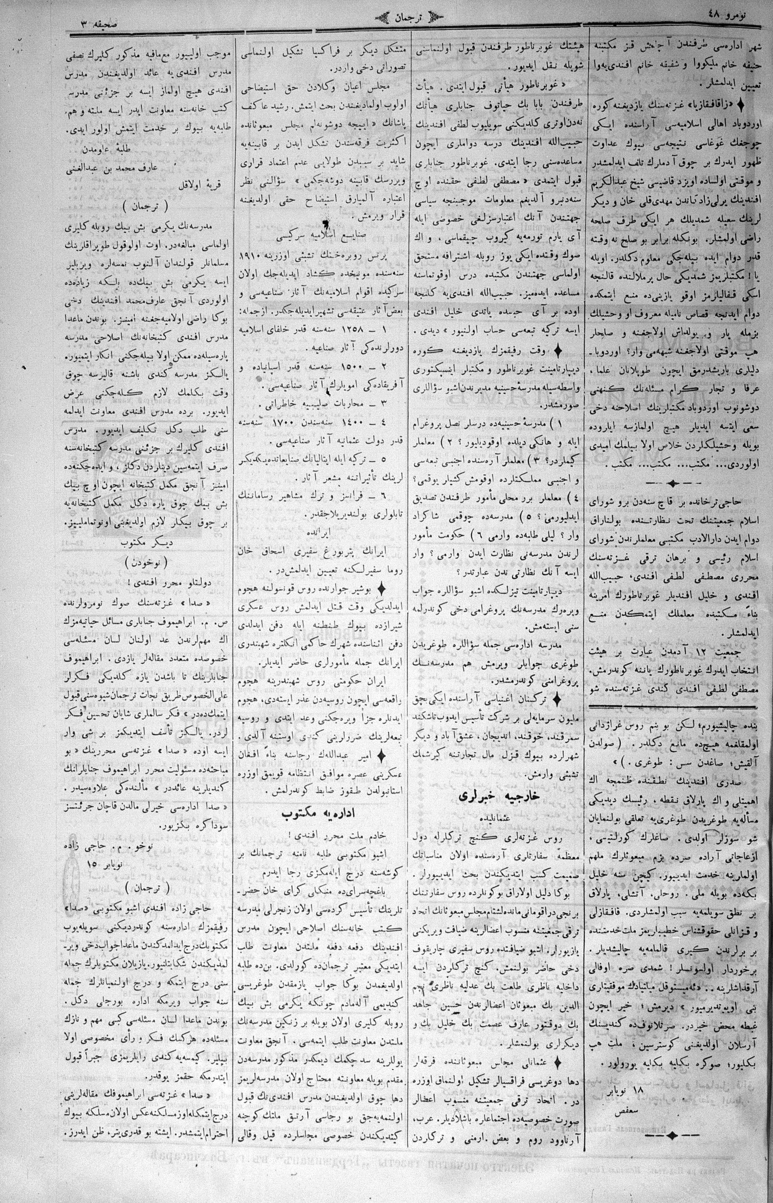 The name of the newspaper changed to Tercüman-ı Ahval-i Zaman in 1905. In 1909, it started to be published under its first name, Tercüman.