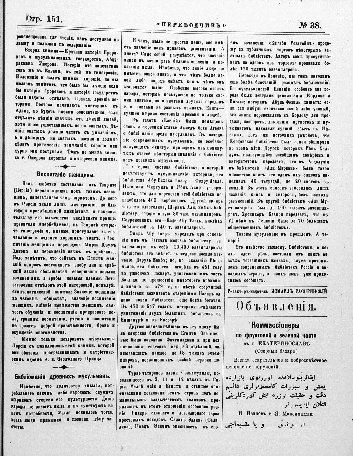 Turkish-Russian newspaper published in Crimea by İsmail Gaspıralı.