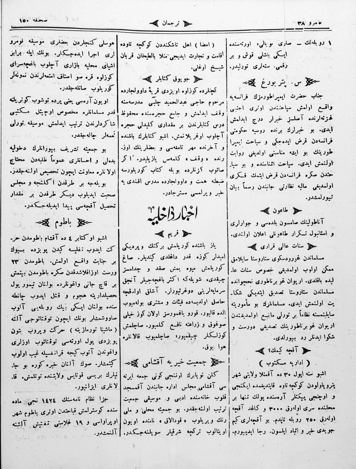 The name of the newspaper changed to Tercüman-ı Ahval-i Zaman in 1905. In 1909, it started to be published under its first name, Tercüman.