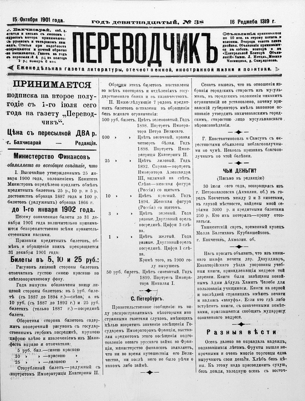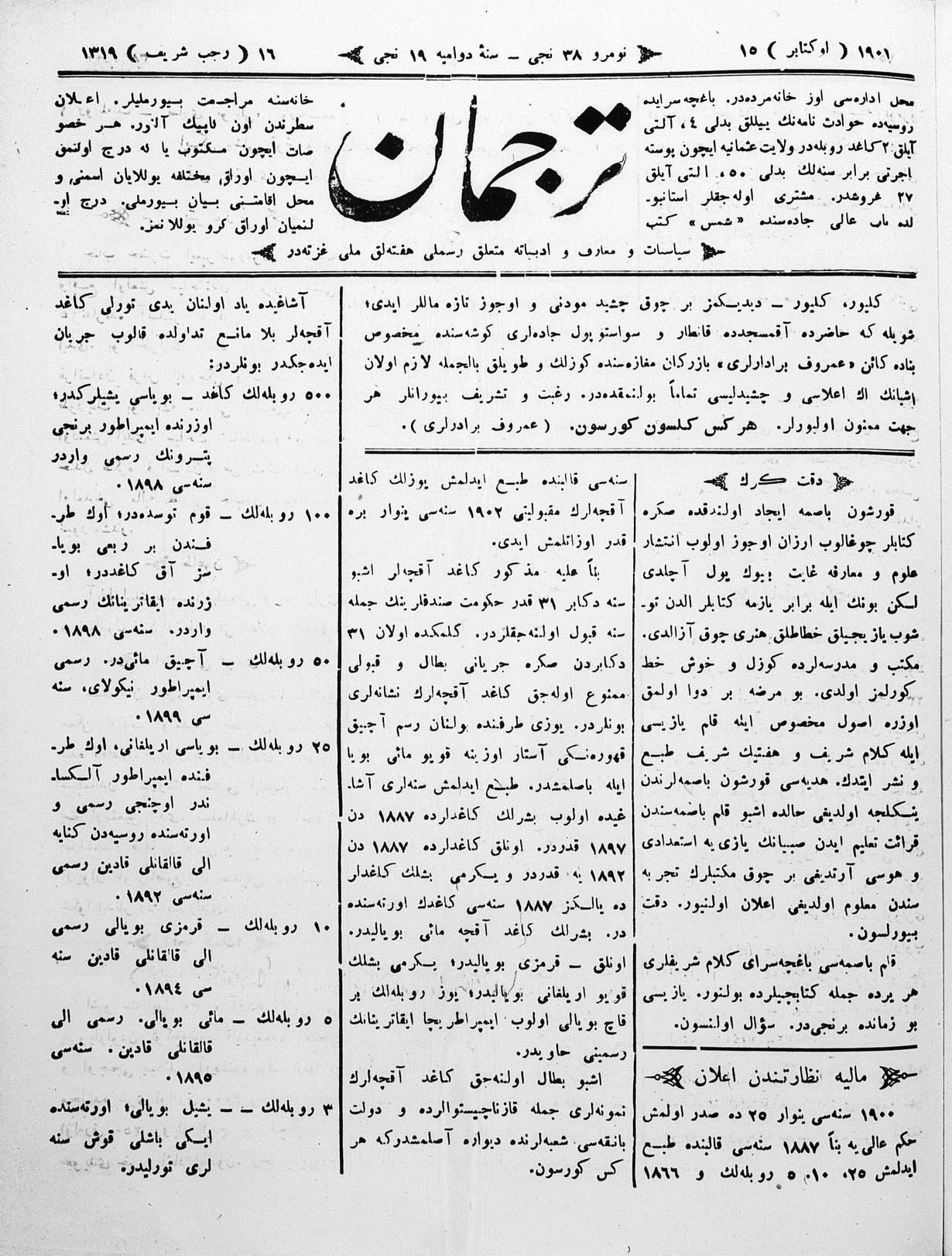 Tercüman, 15 October 1901 Year 19 No 38