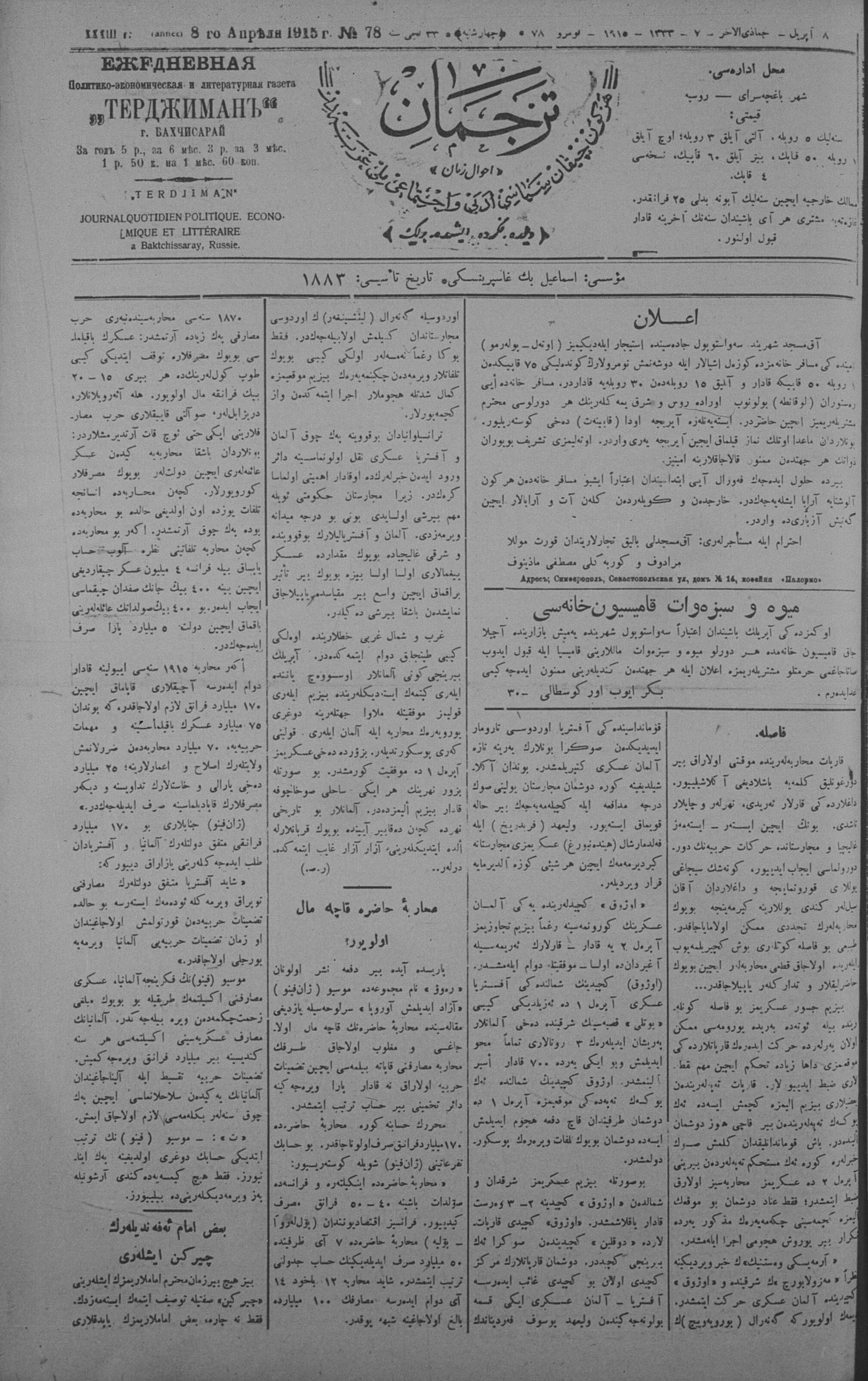Tercüman, 08 April 1915 Year 33 No 78