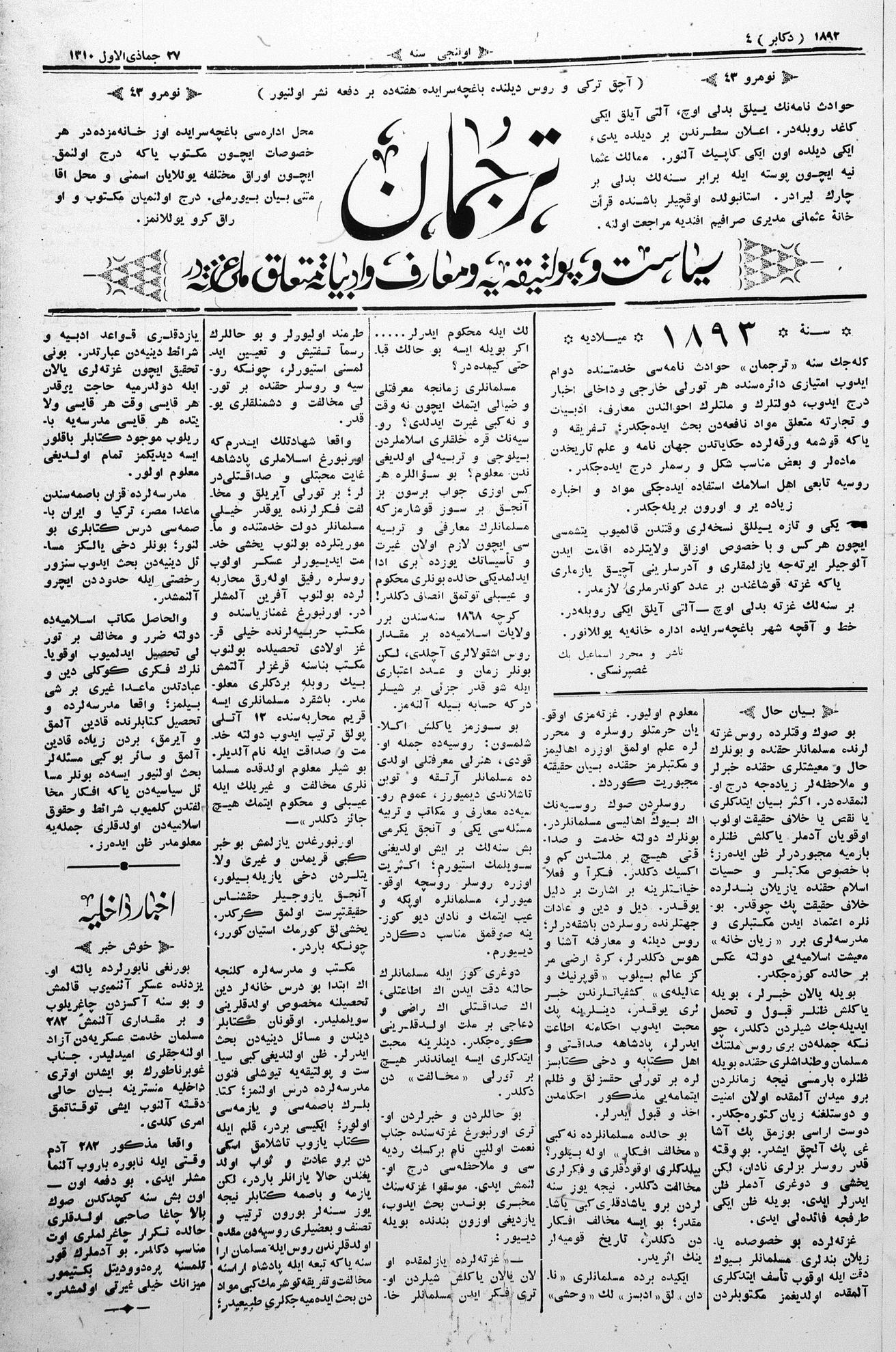 Tercüman, 04 December 1892 Year 10 No 43