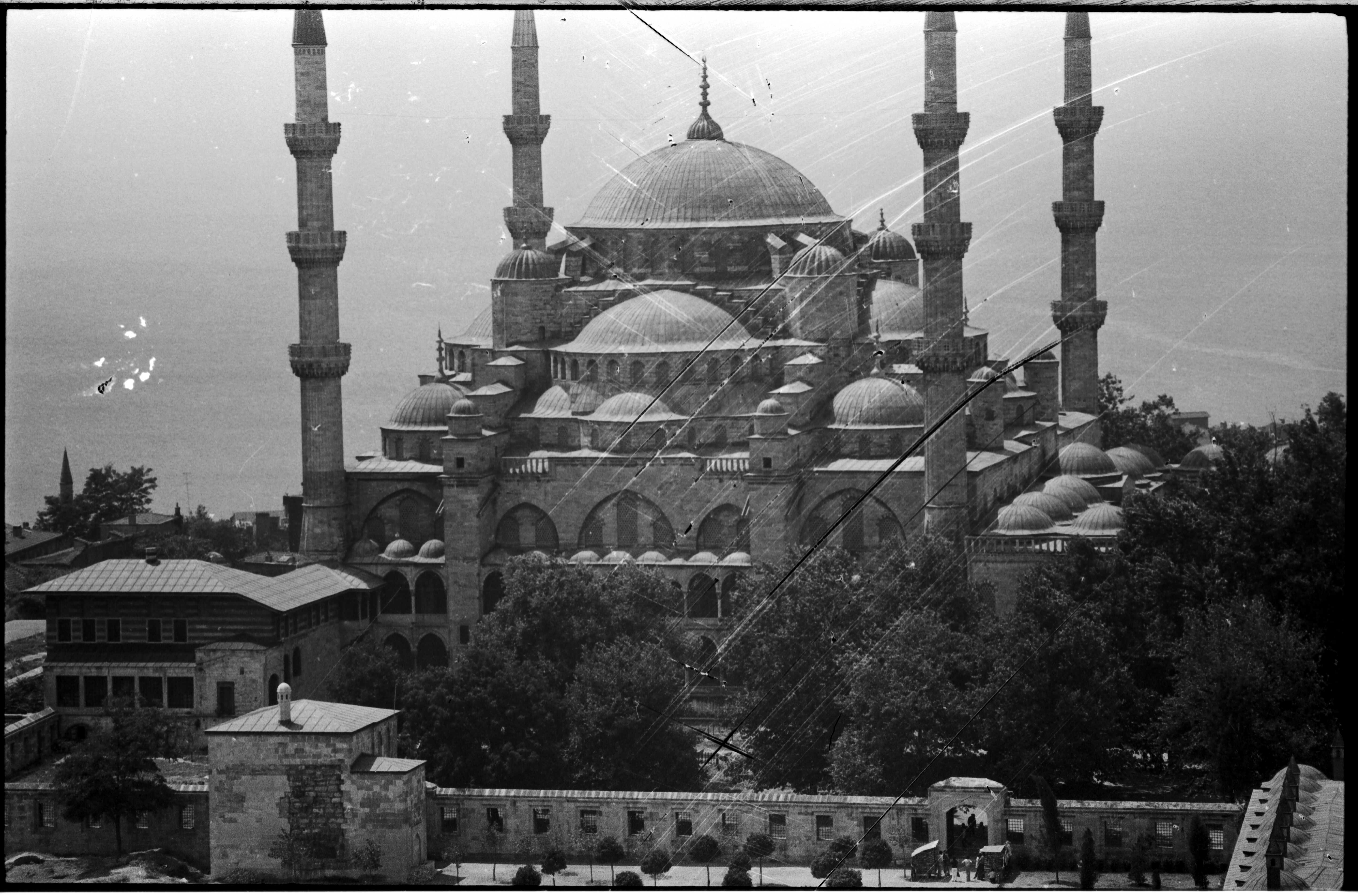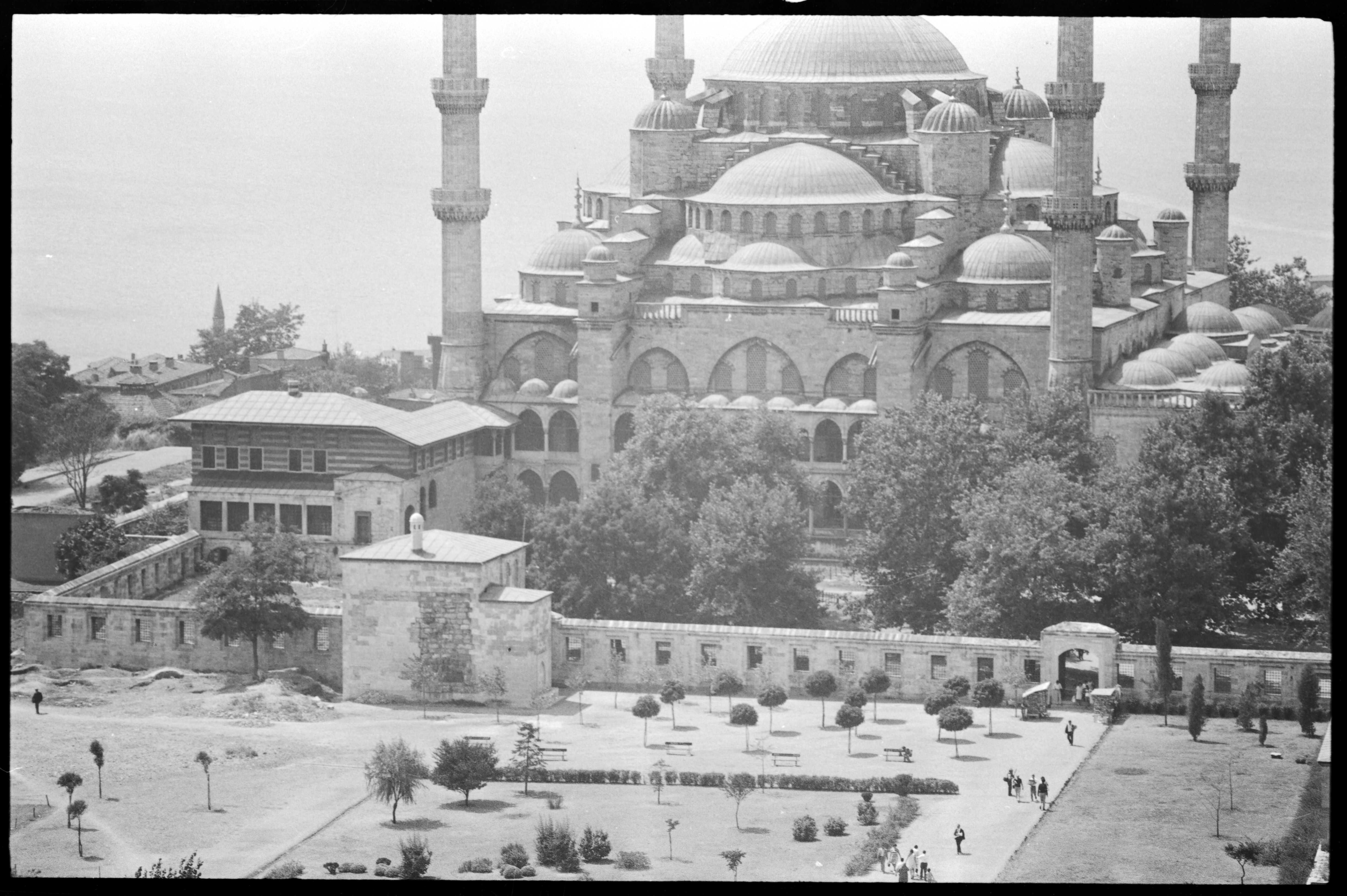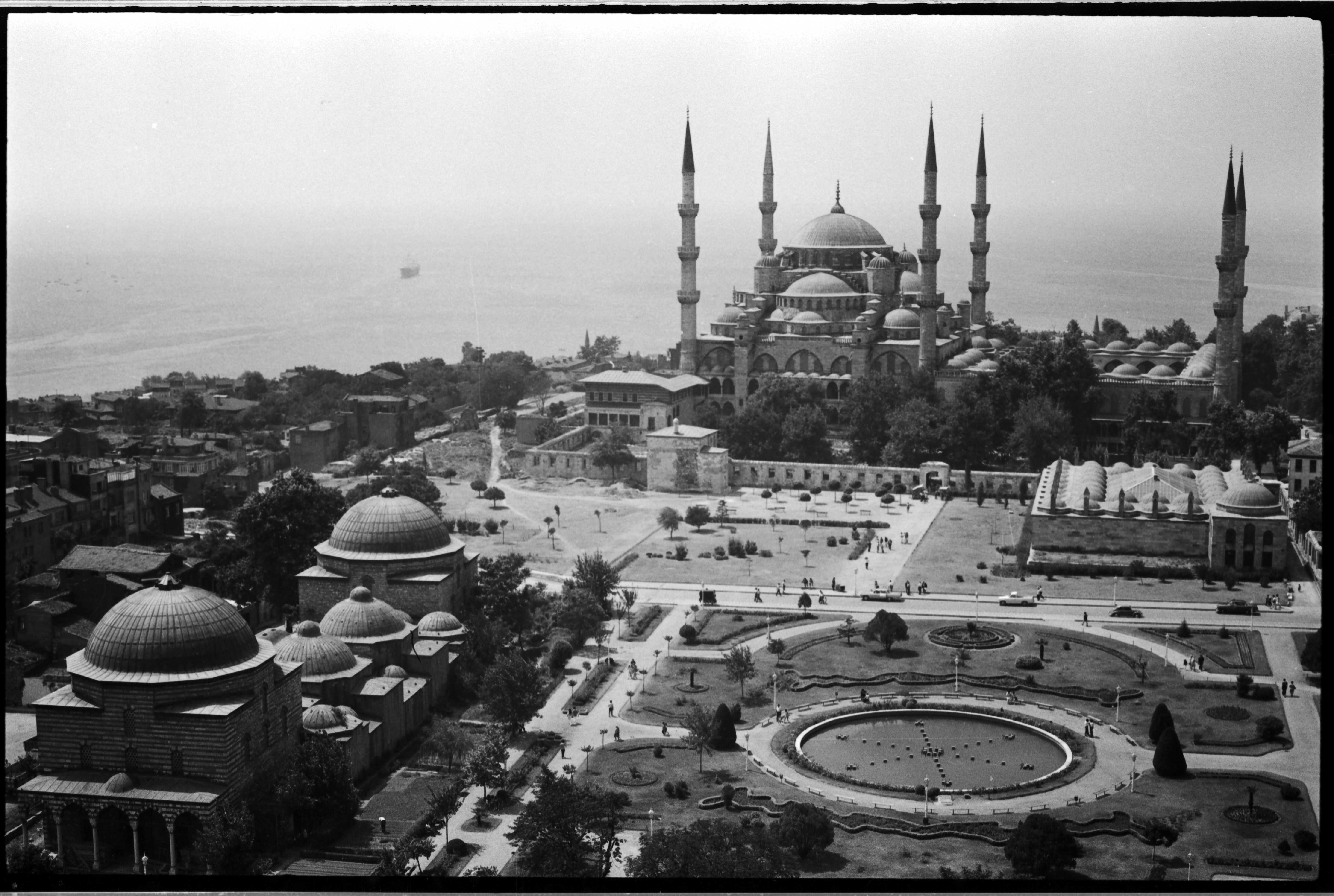 Ayasofya Camii'nin Mimar Sinan tarafından inşa edilen minaresinden Sultan Ahmet Camii'nin görünüşü