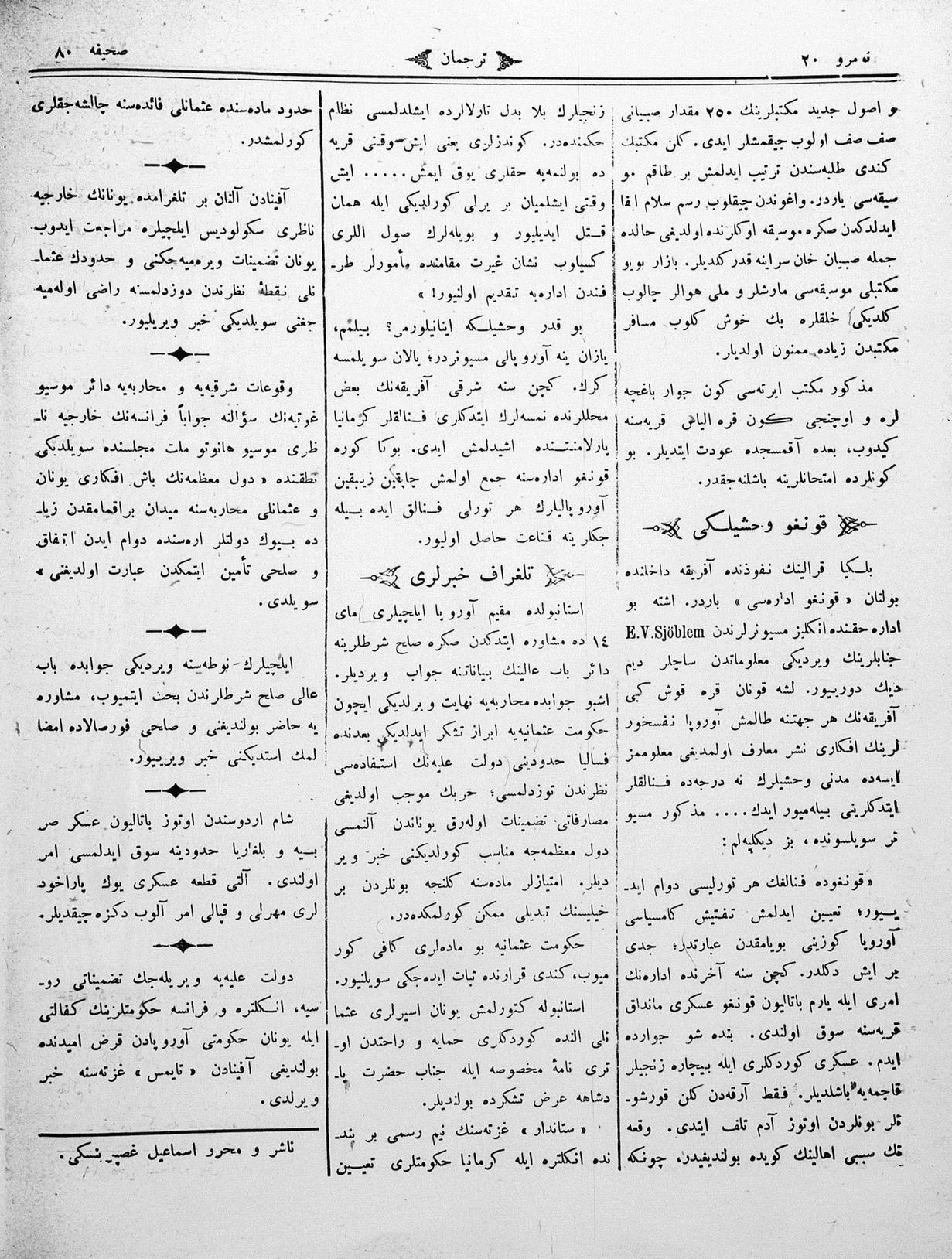 The name of the newspaper changed to Tercüman-ı Ahval-i Zaman in 1905. In 1909, it started to be published under its first name, Tercüman.