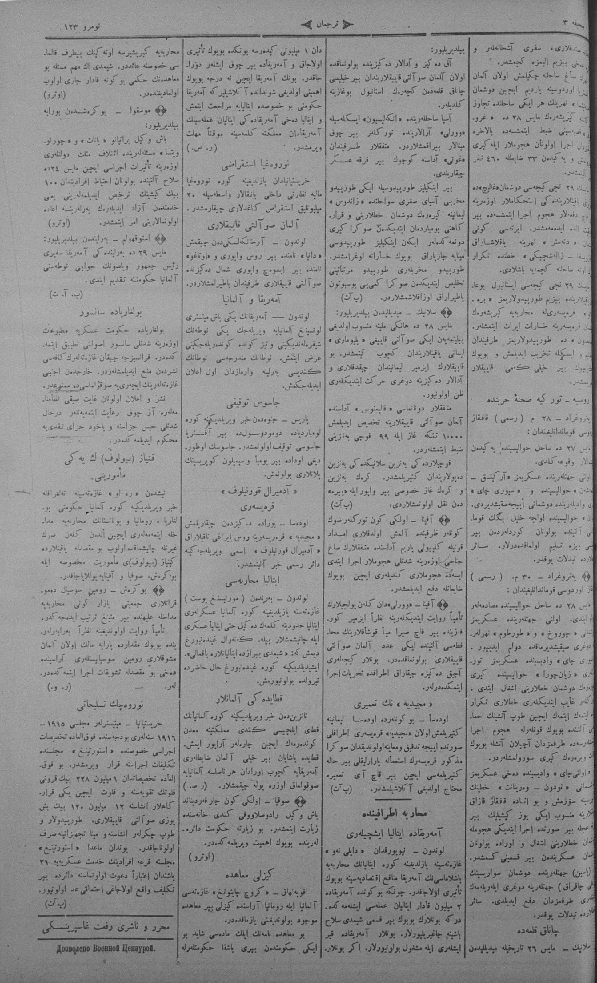 Tercüman, 01 June 1915 Year 33 No 123