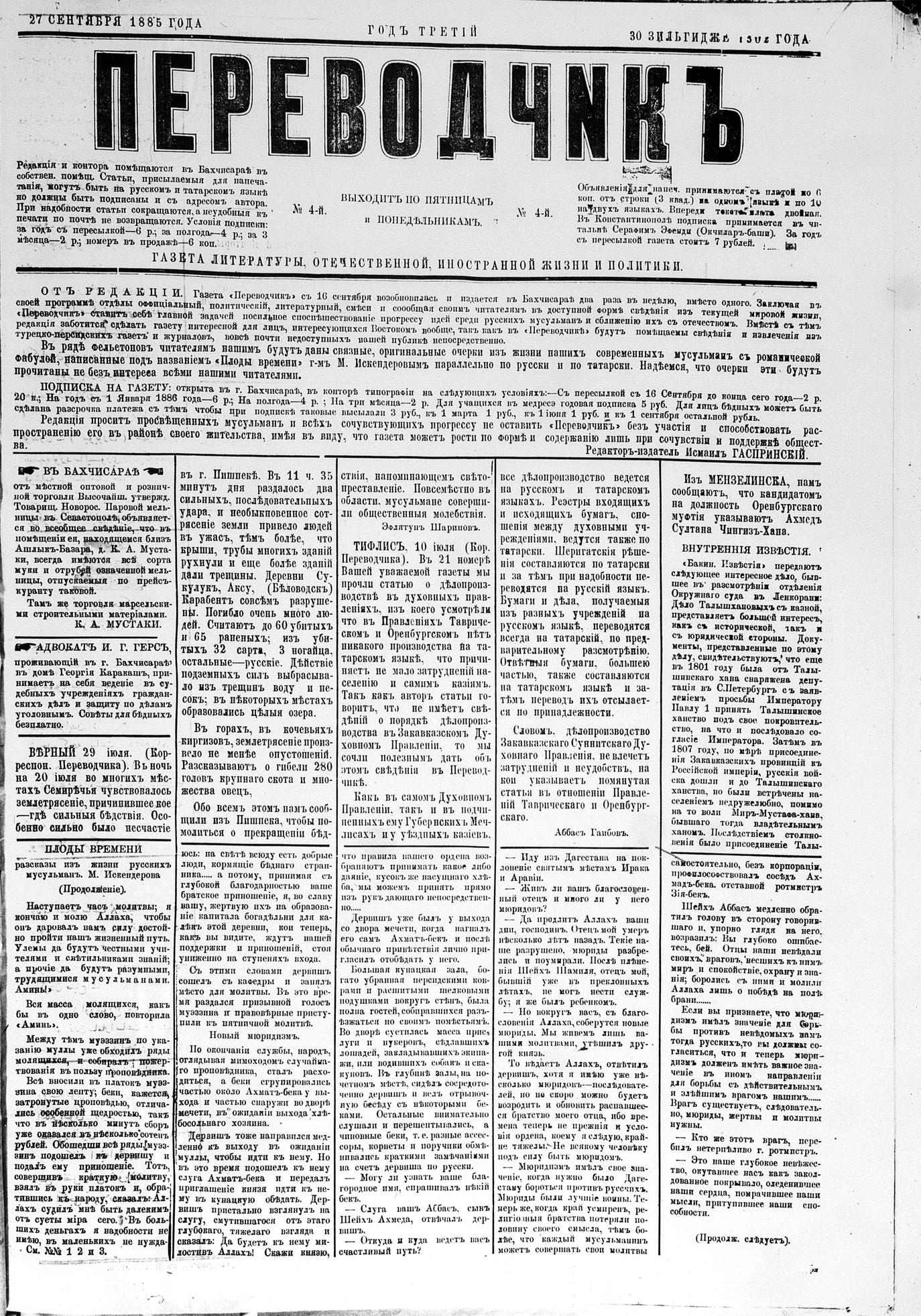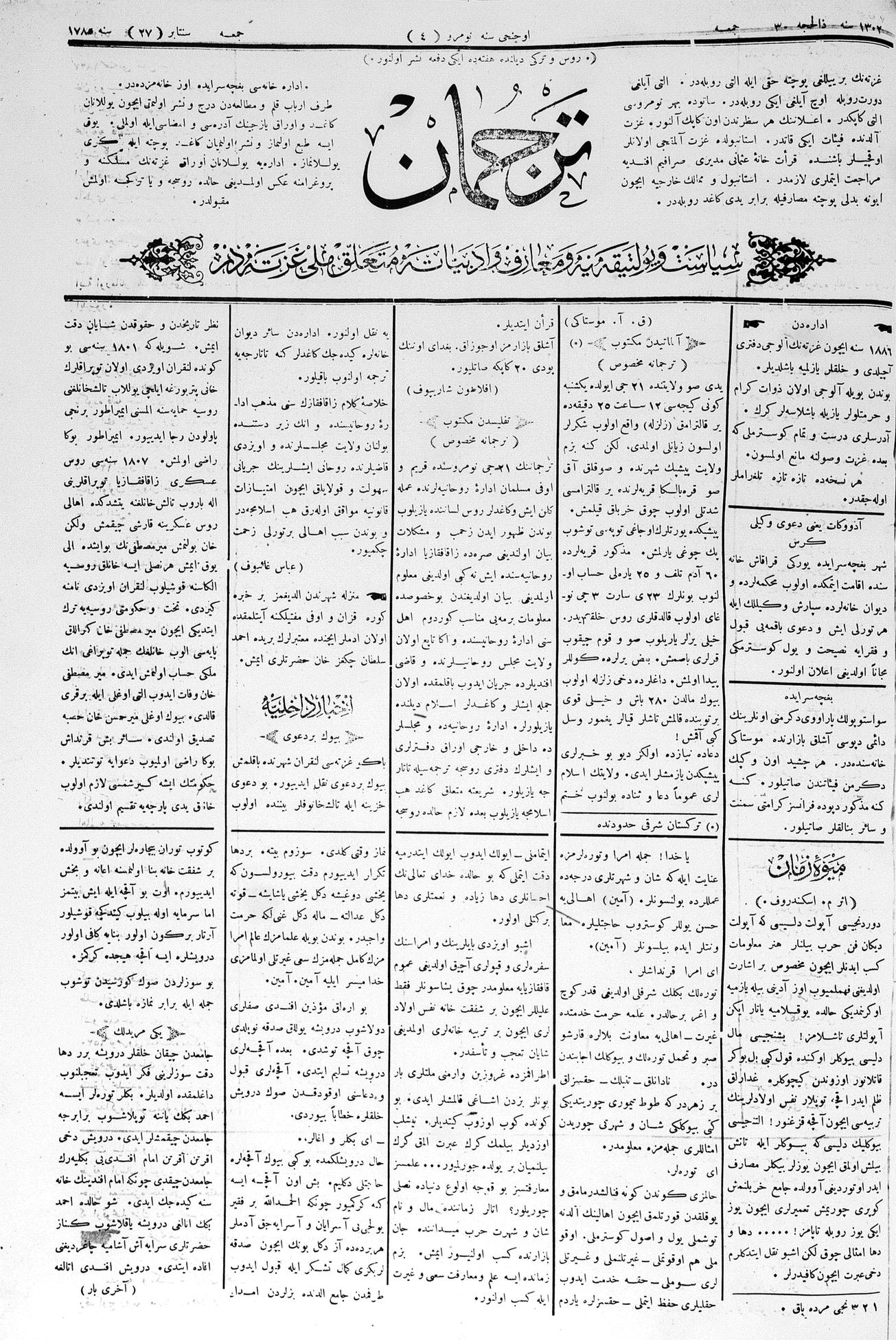 Tercüman, 27 September 1885 Year 3 No 4