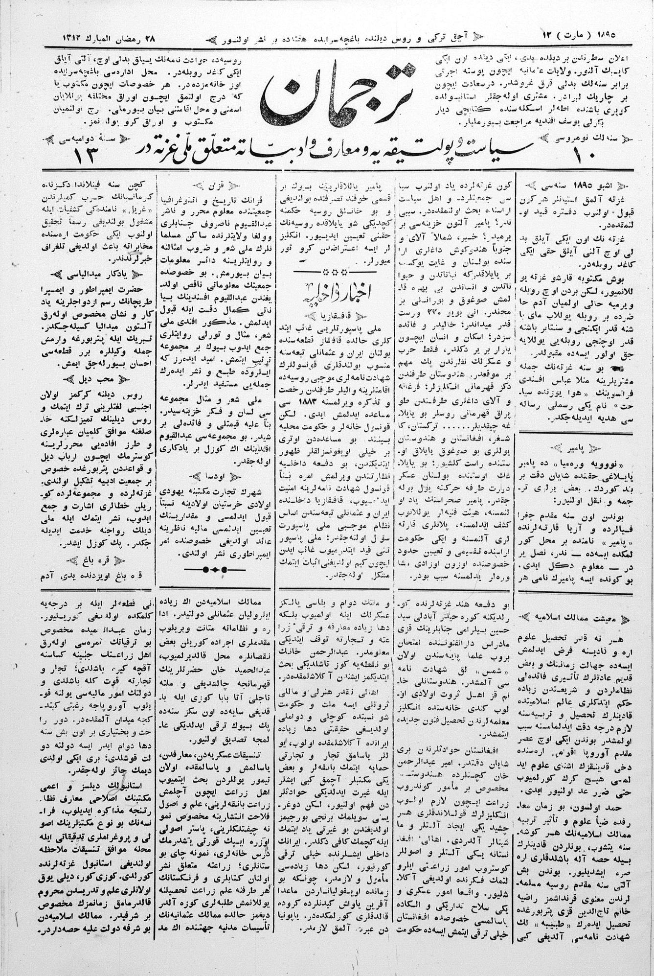 The name of the newspaper changed to Tercüman-ı Ahval-i Zaman in 1905. In 1909, it started to be published under its first name, Tercüman.
