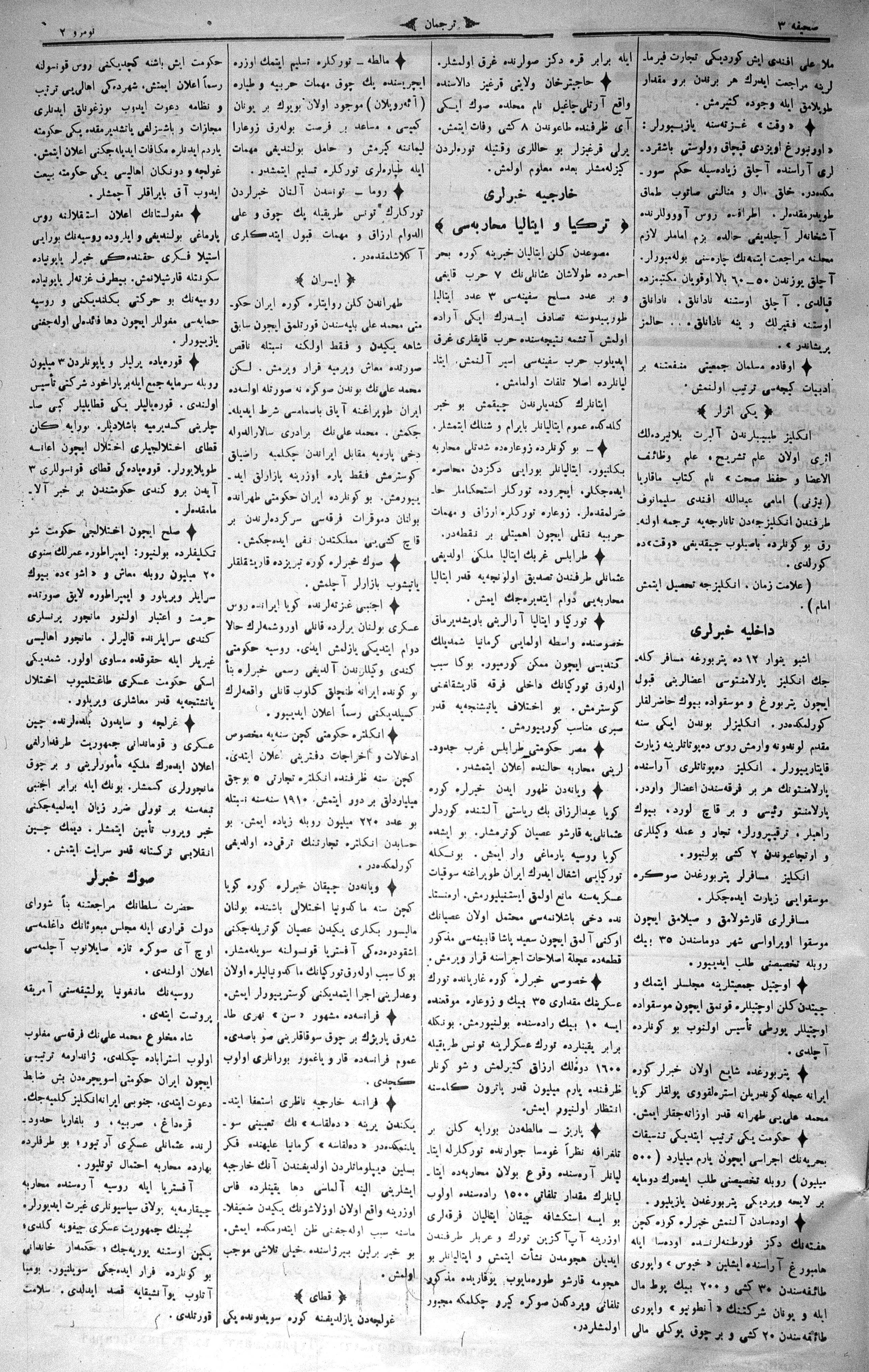 The name of the newspaper changed to Tercüman-ı Ahval-i Zaman in 1905. In 1909, it started to be published under its first name, Tercüman.