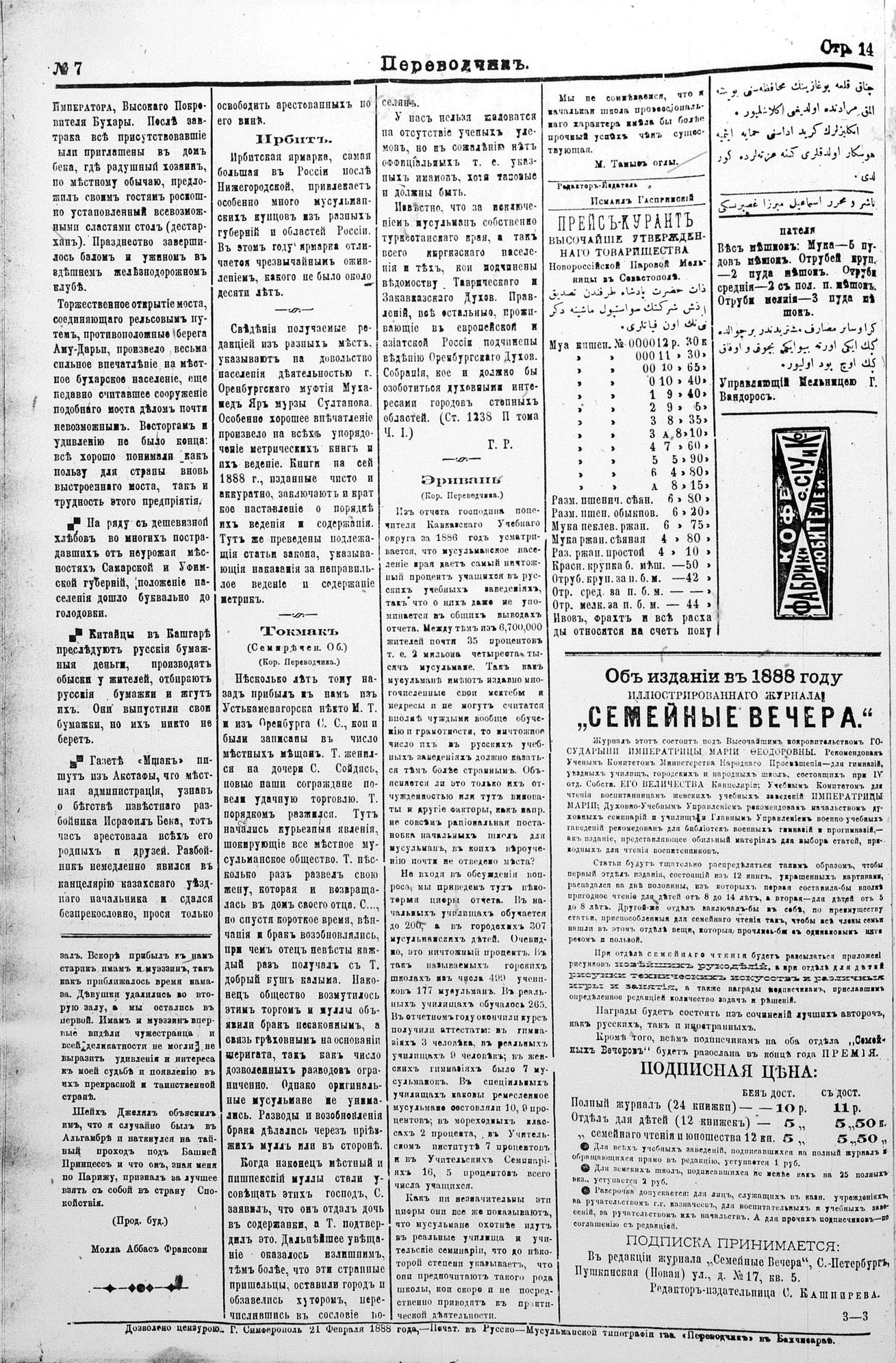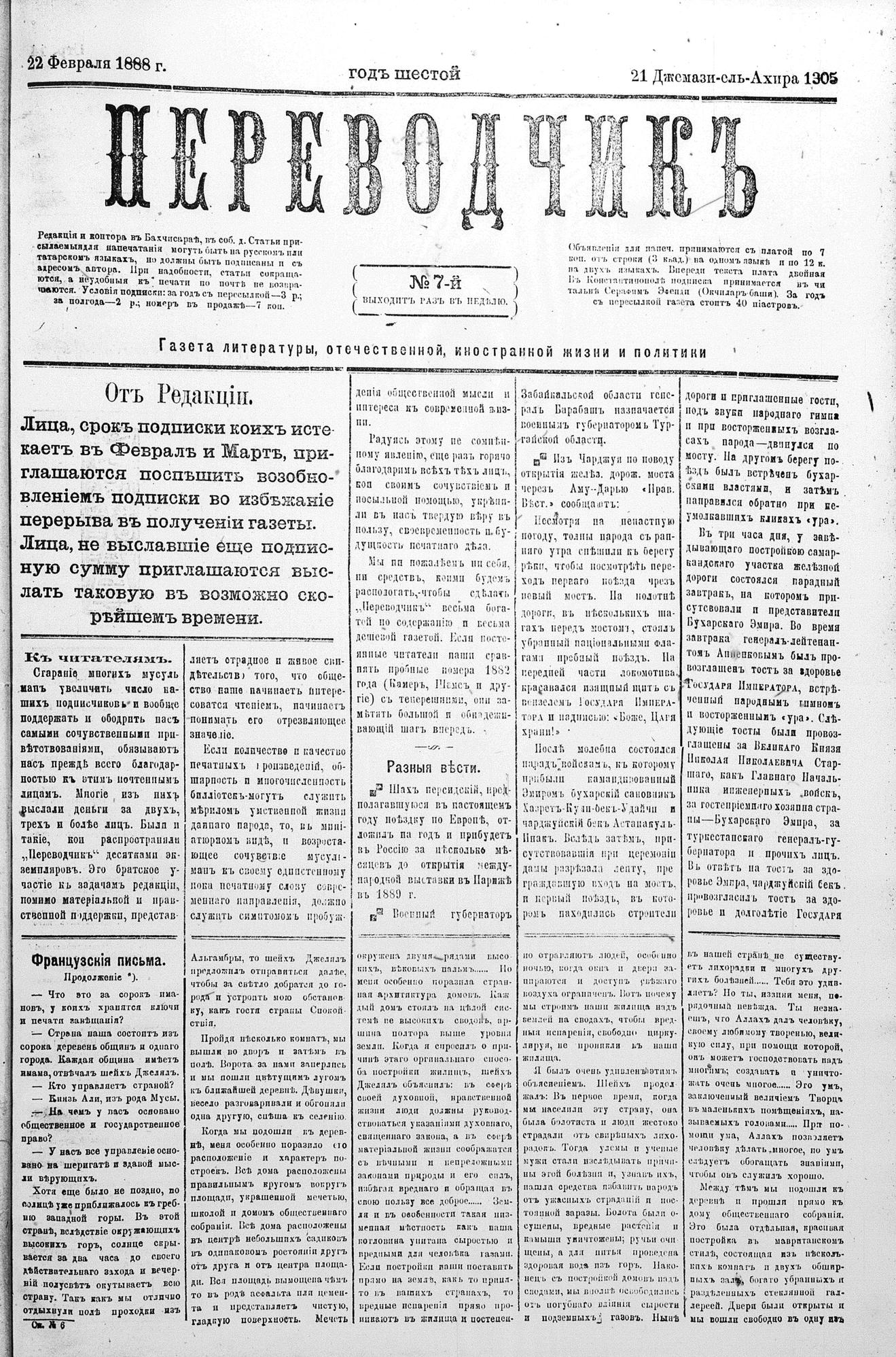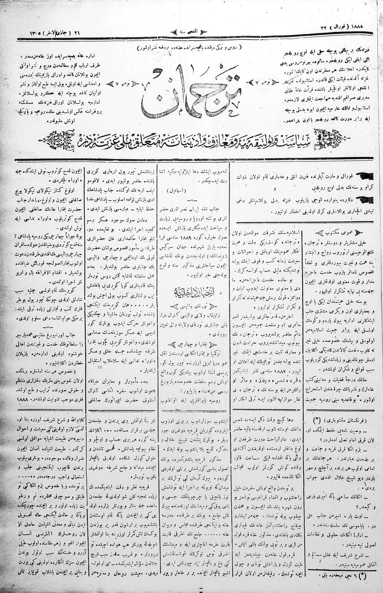 Tercüman, 22 February 1888 Year 6 No 7