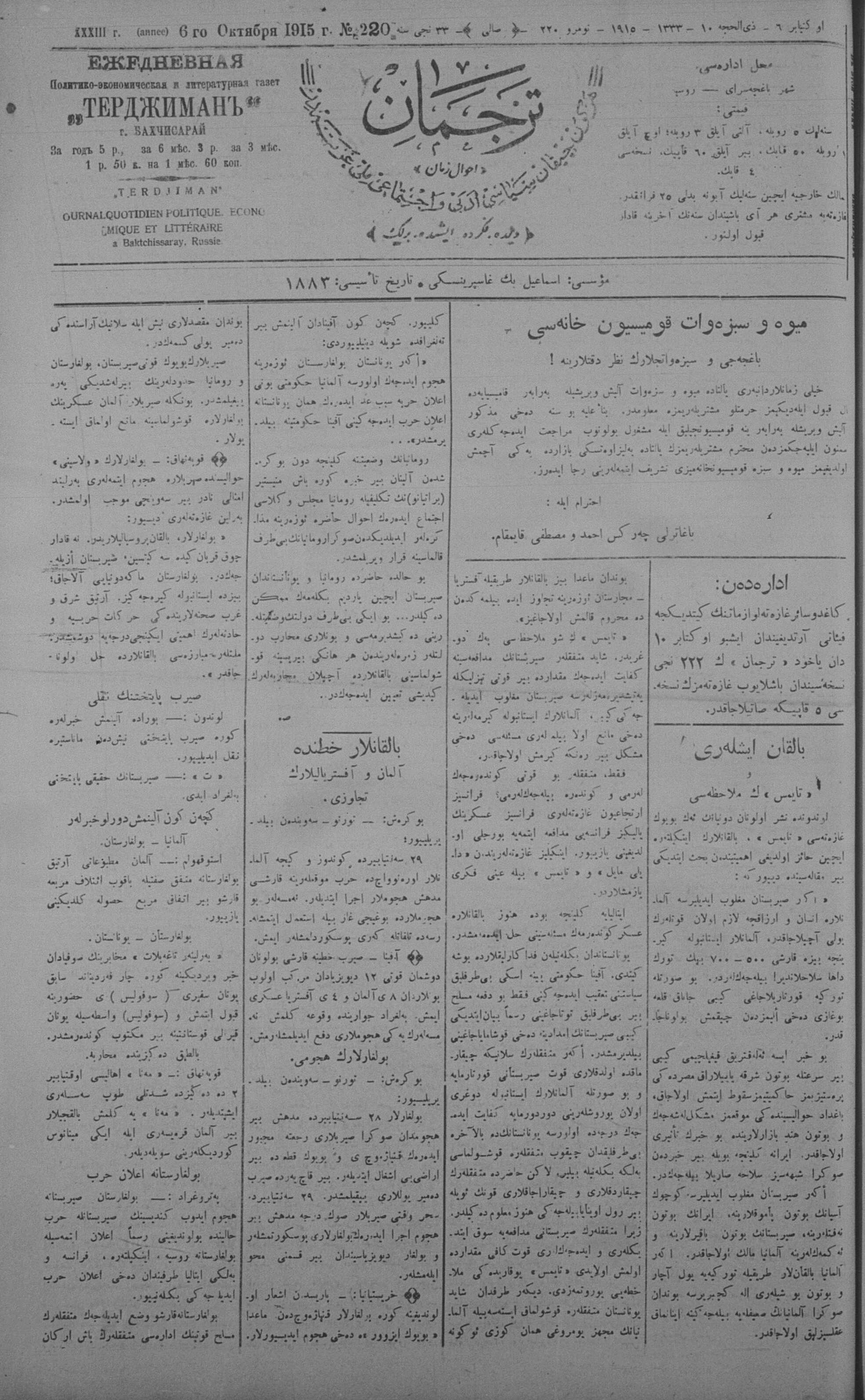Tercüman, 06 October 1915 Year 33 No 220