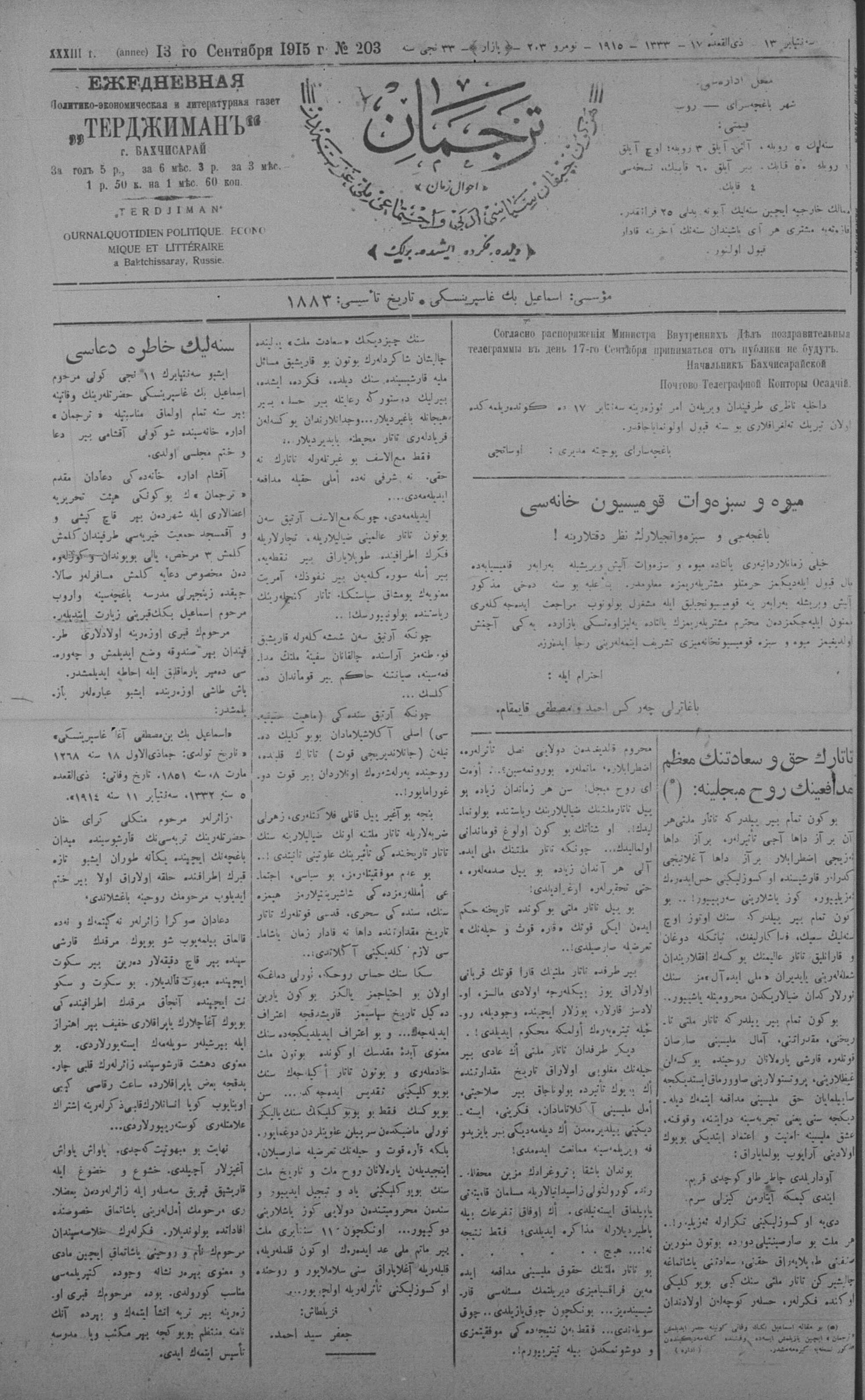 Turkish-Russian newspaper published in Crimea by İsmail Gaspıralı.