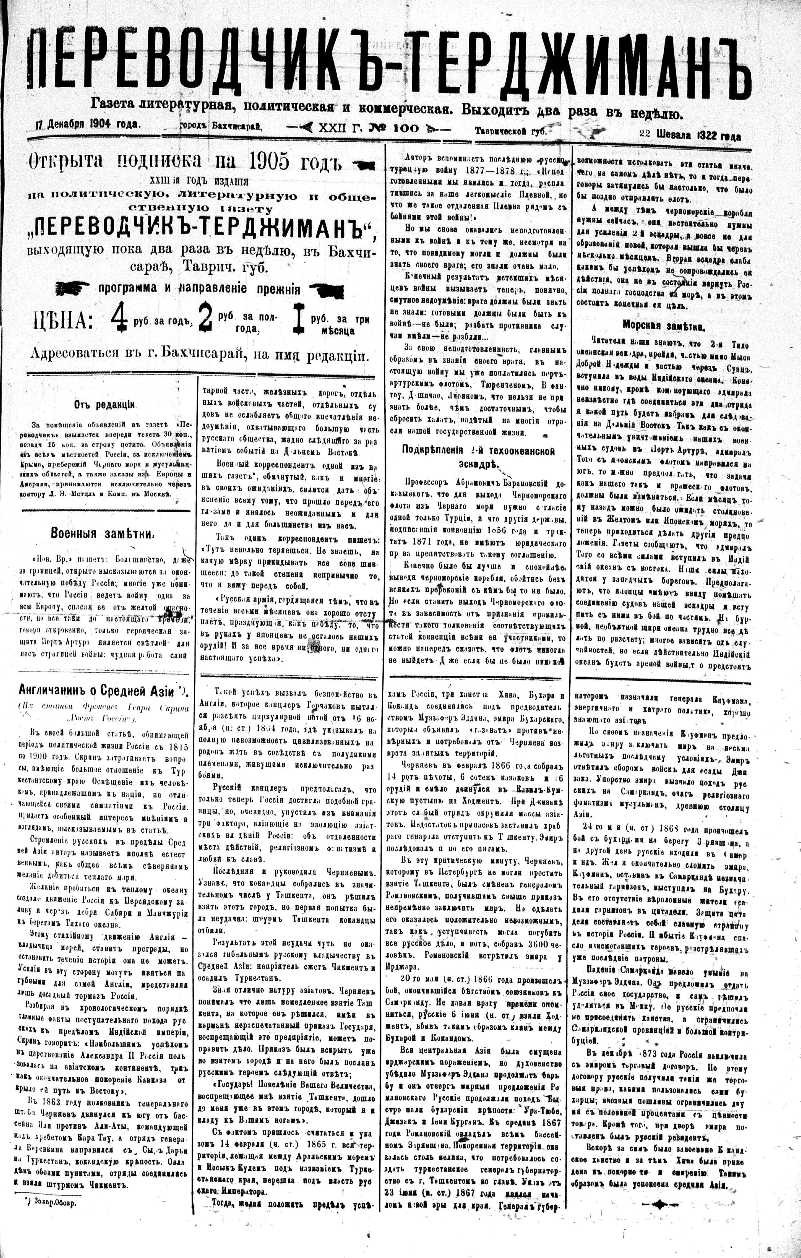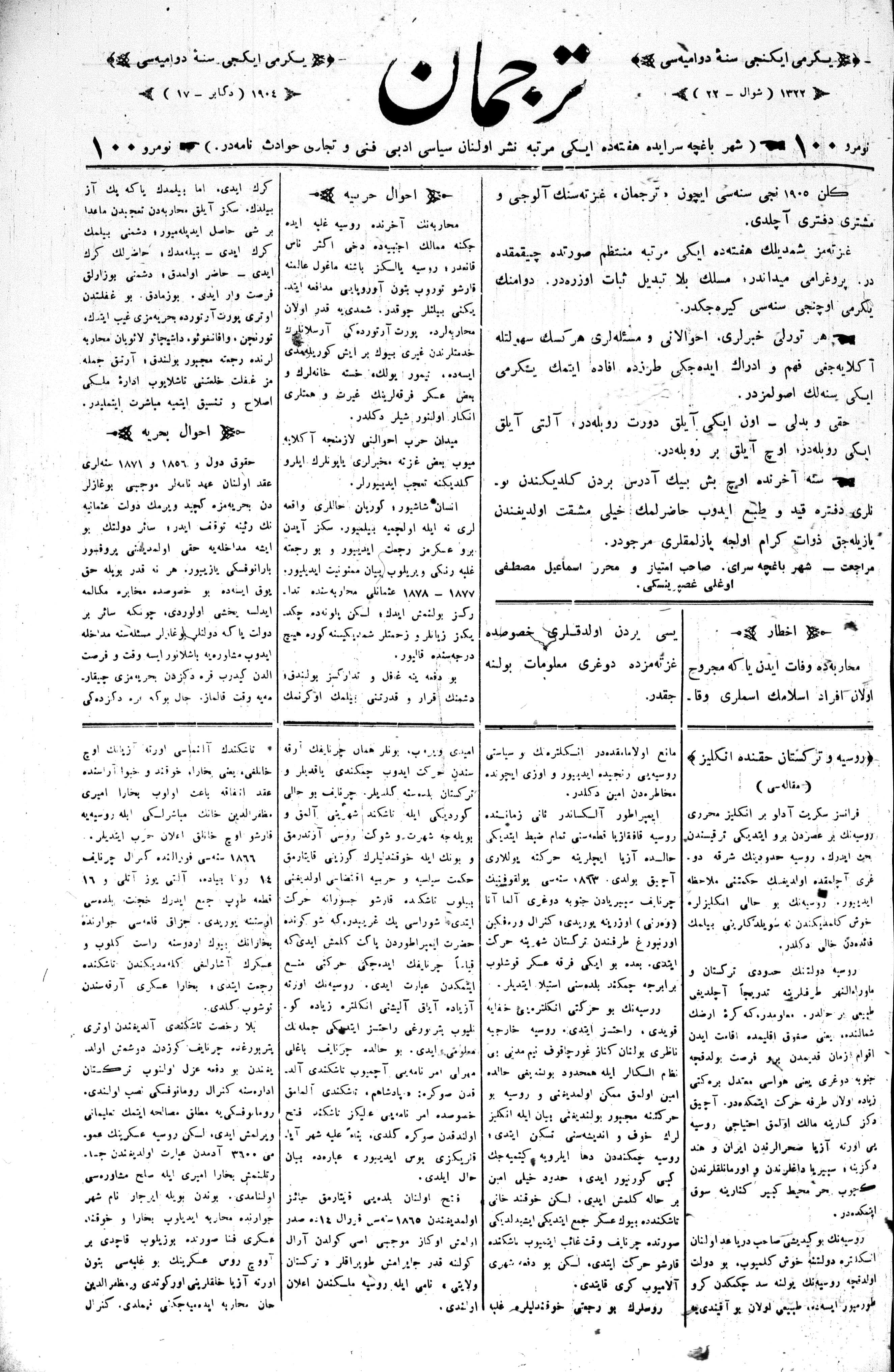 Tercüman, 17 December 1904 Year 22 No 100