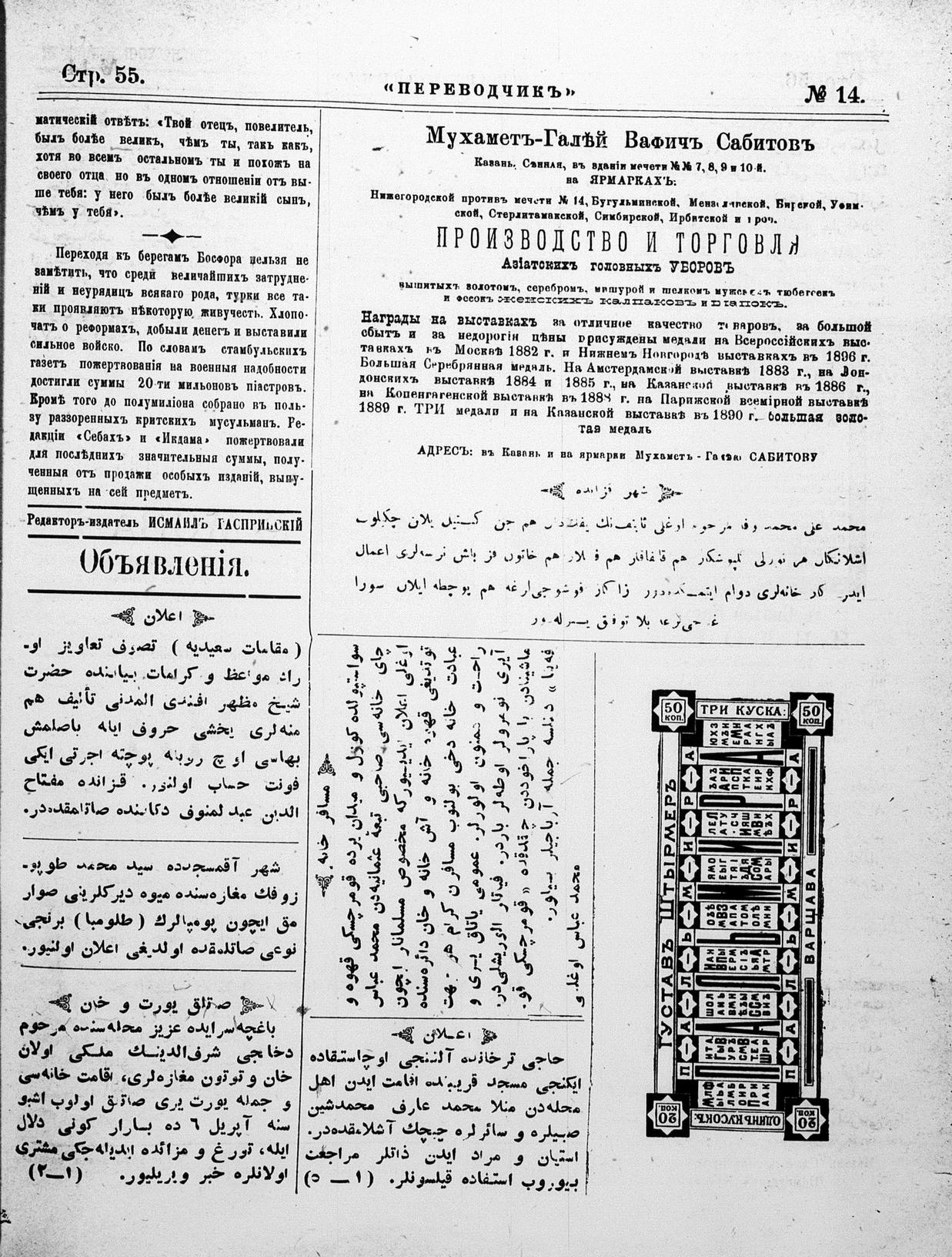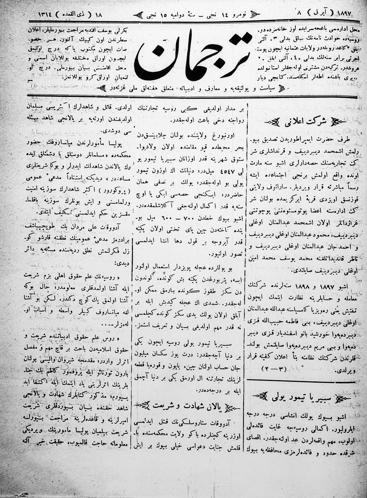 Turkish-Russian newspaper published in Crimea by İsmail Gaspıralı.