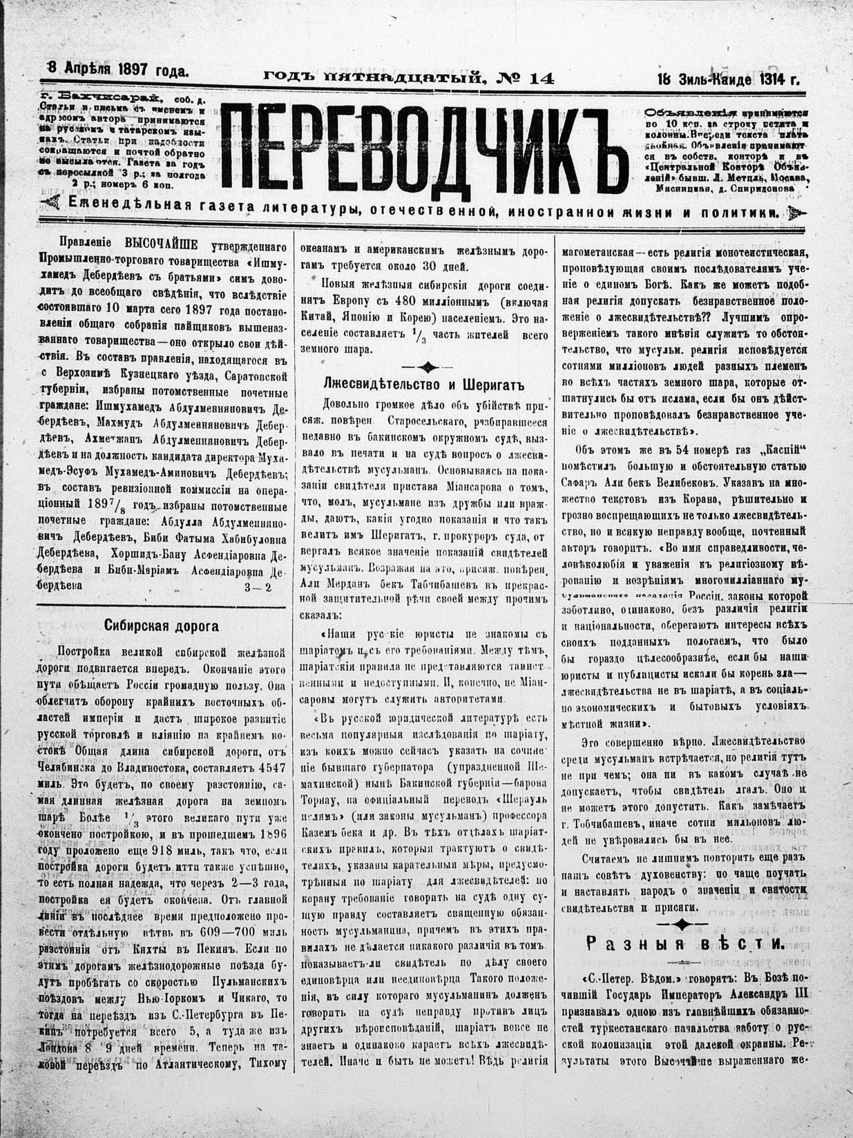 Tercüman, 08 April 1897 Year 15 No 14