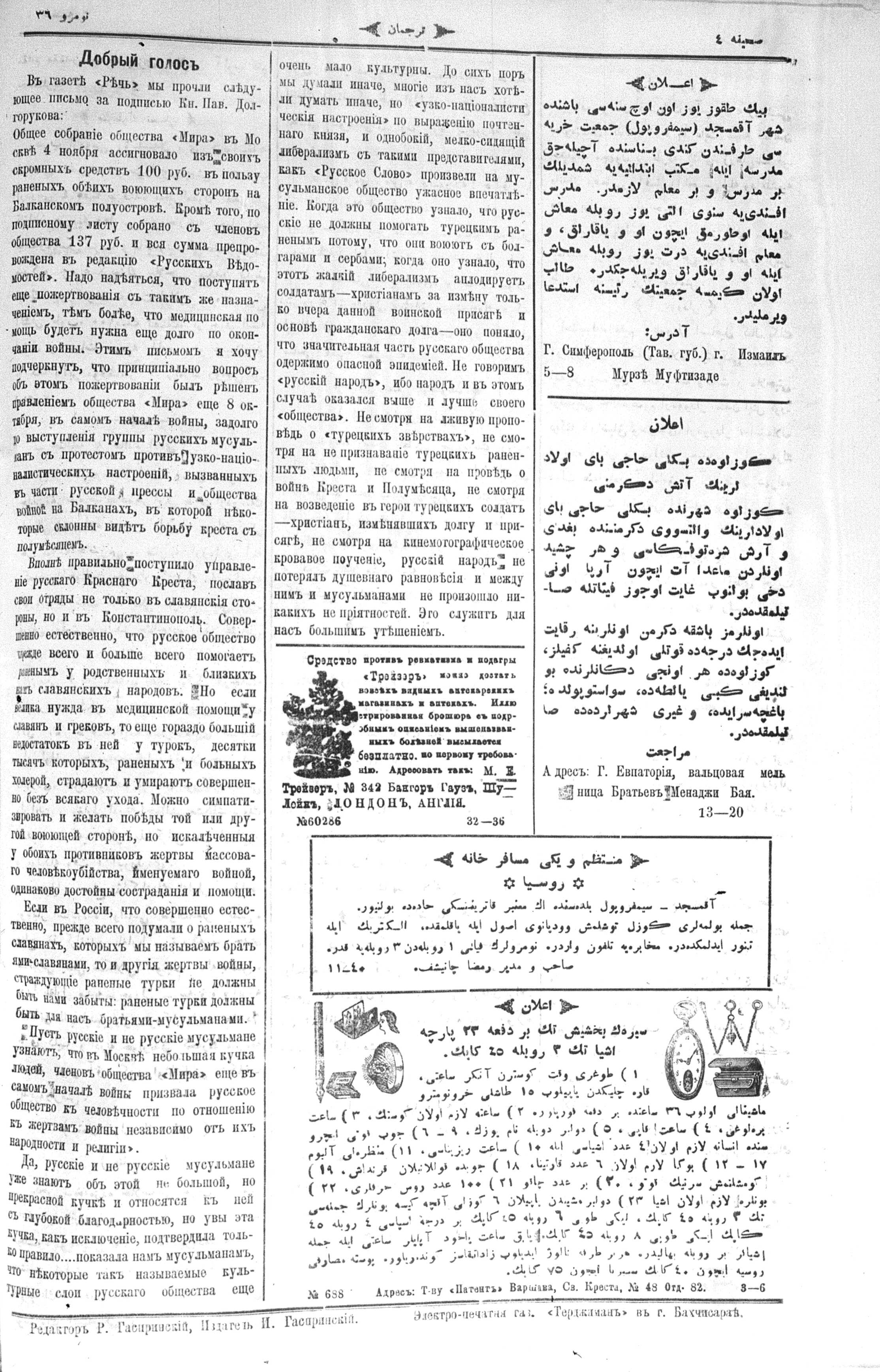 Turkish-Russian newspaper published in Crimea by İsmail Gaspıralı.