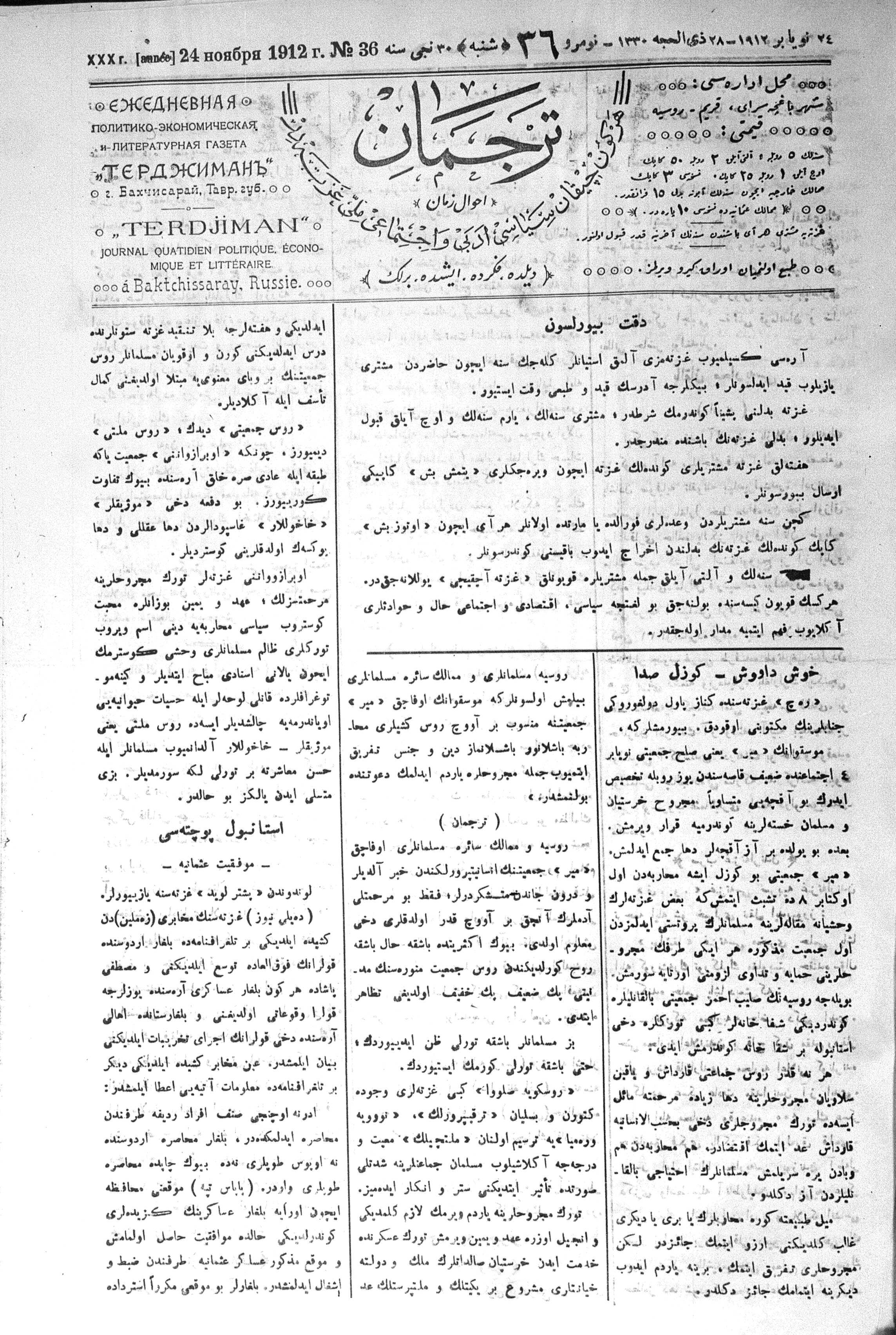 Tercüman, 24 November 1912 Year 30 No 36