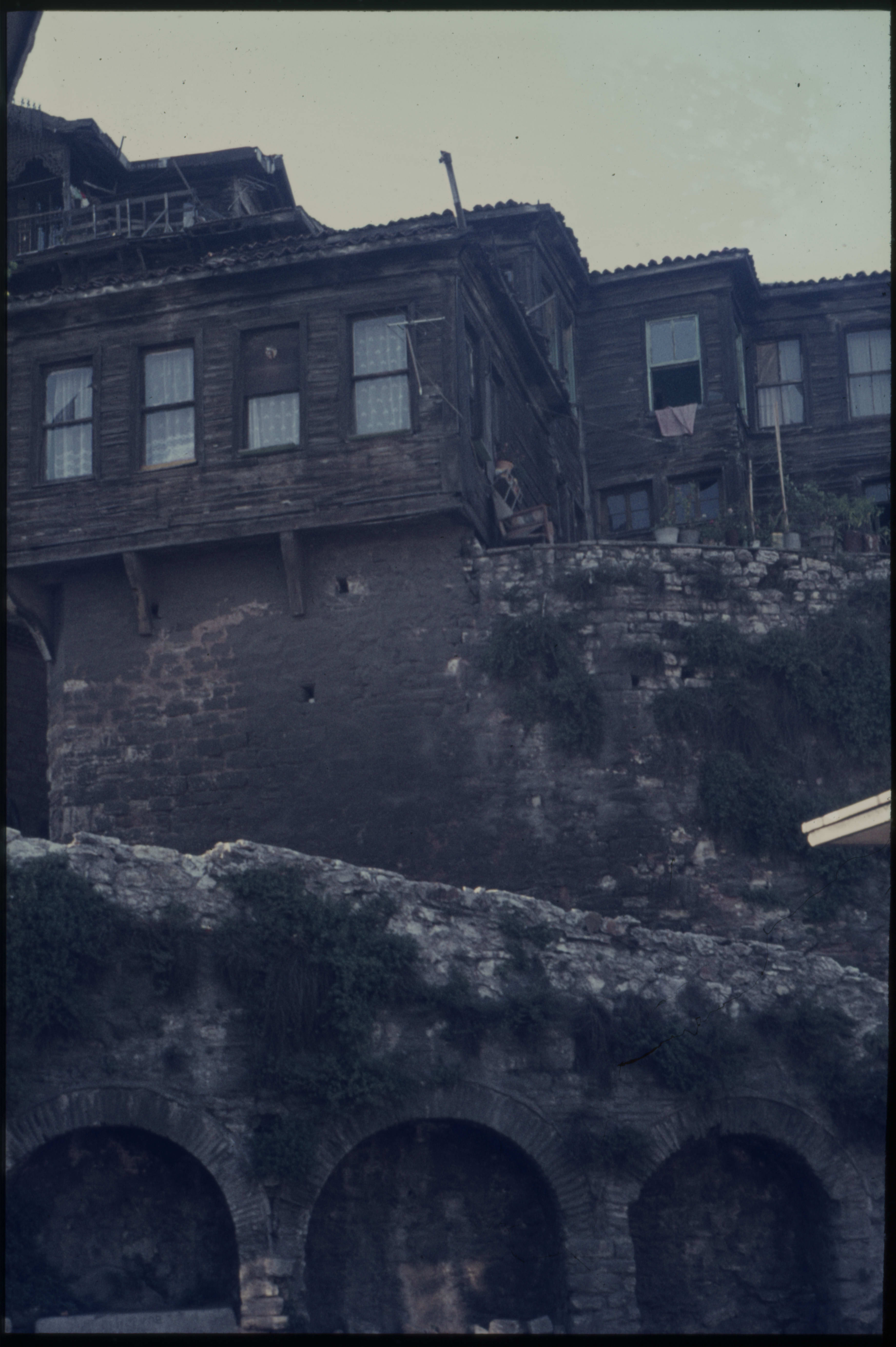 İstanbul-Zeyrek'te ahşap bir evin ön cebhesinin yandan görünüşü