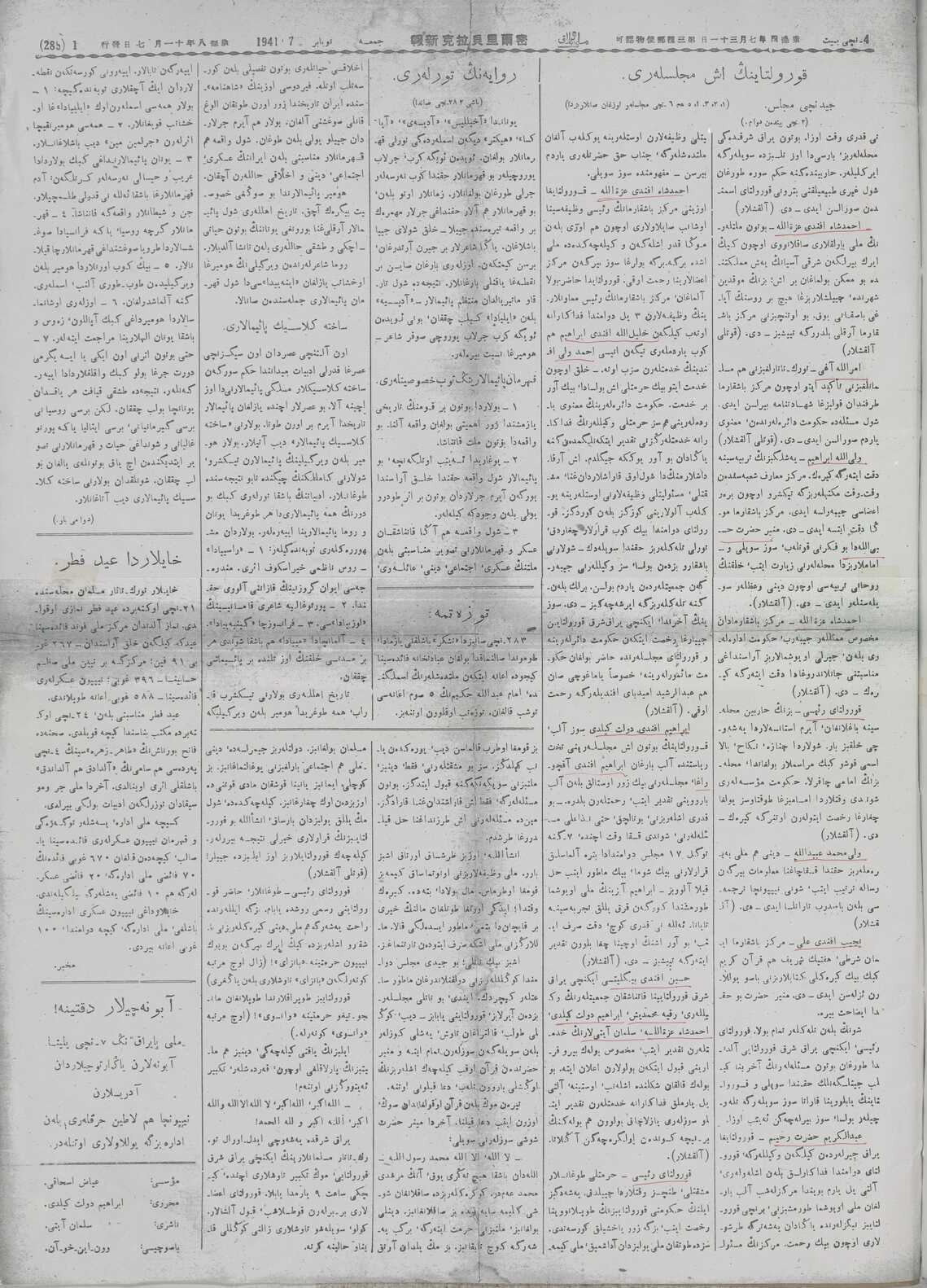 Milli Bayrak, 07 November 1941 Year 7 No 285-1