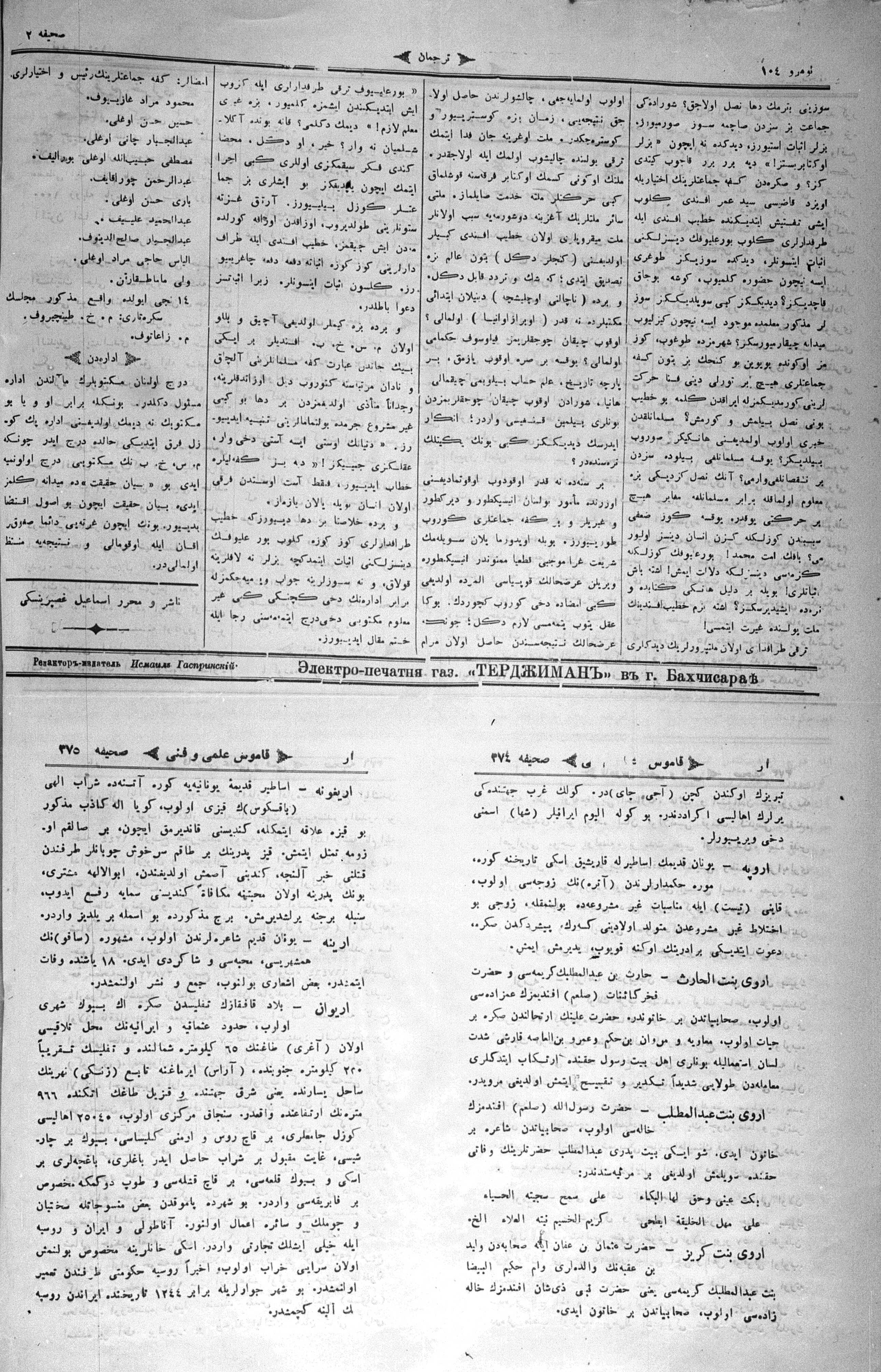 Different spellings of Tercüman: Terdzhiman, Terjuman, Perevodçik and Terjiman.