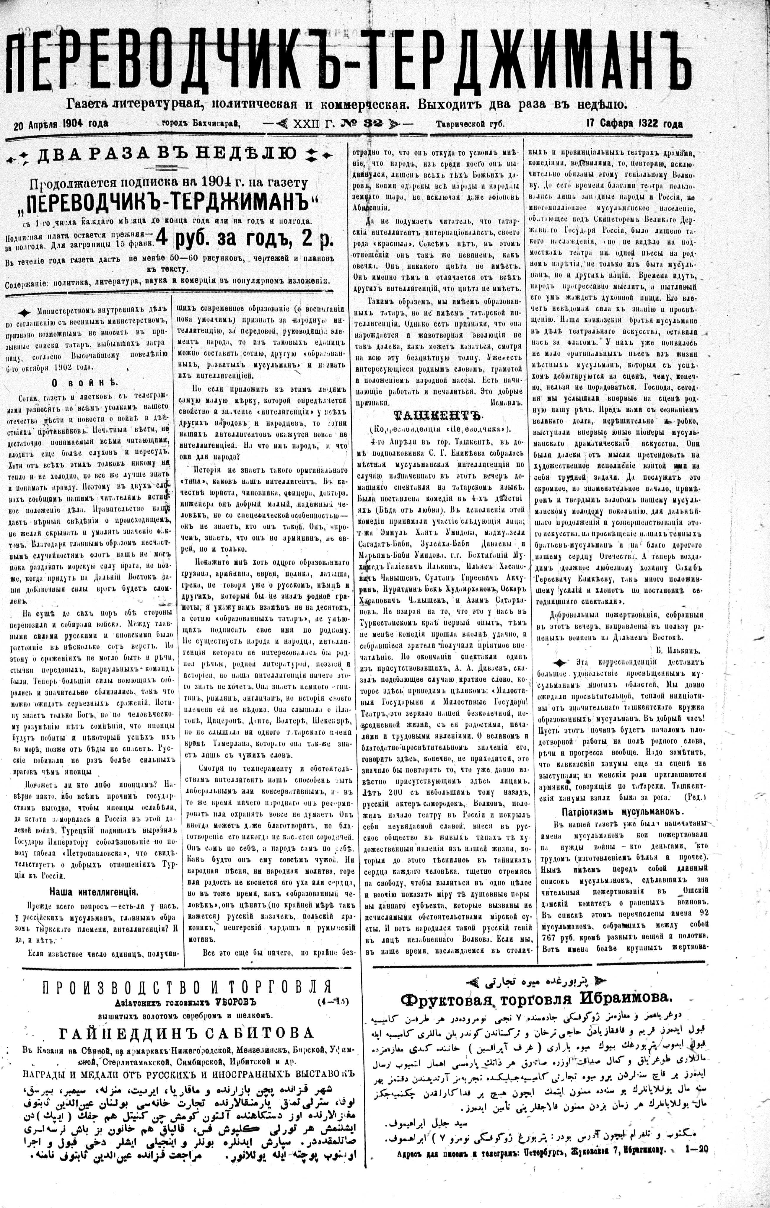 Tercüman, 20 April 1904 Year 22 No 32