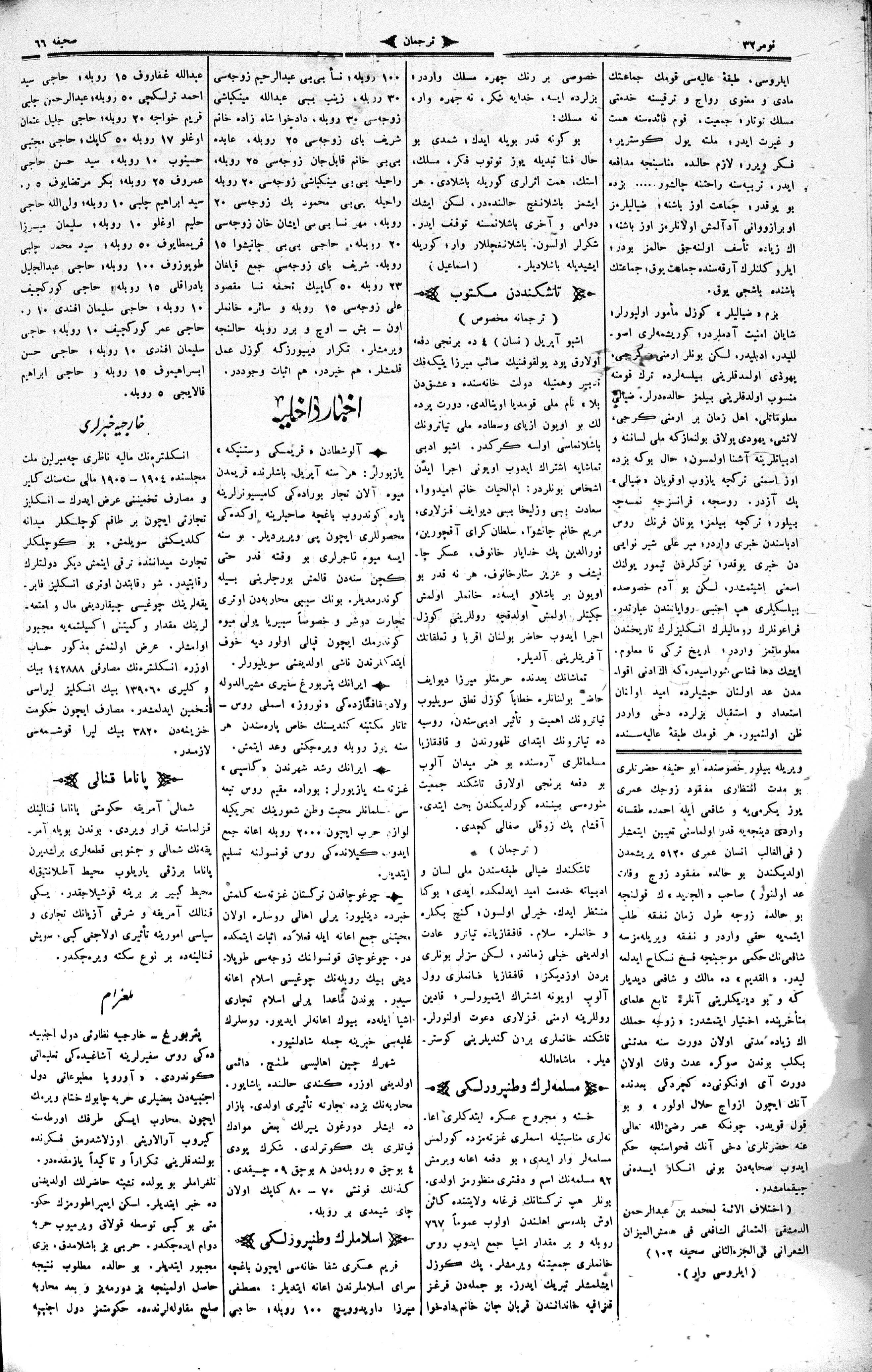 The name of the newspaper changed to Tercüman-ı Ahval-i Zaman in 1905. In 1909, it started to be published under its first name, Tercüman.