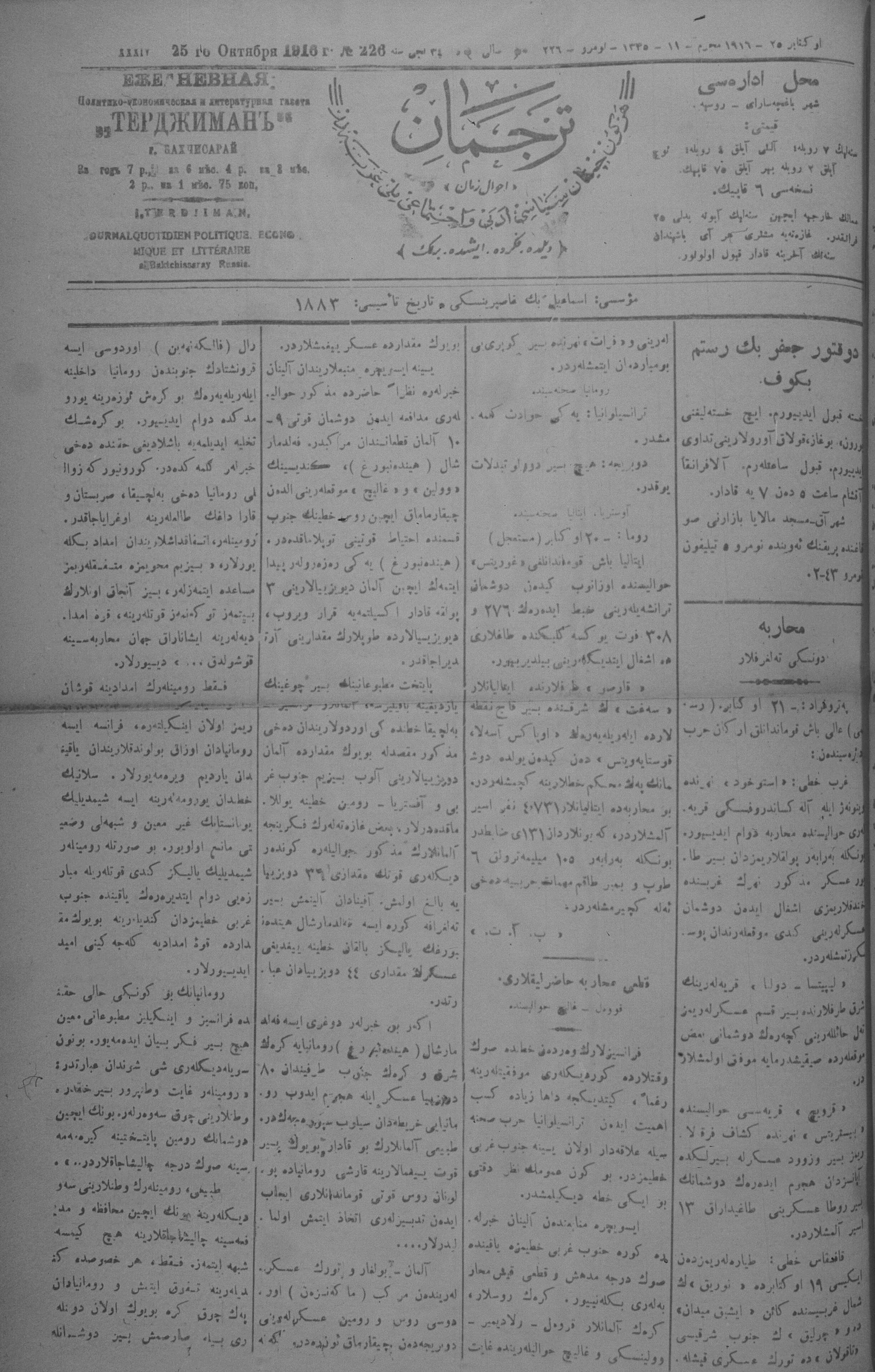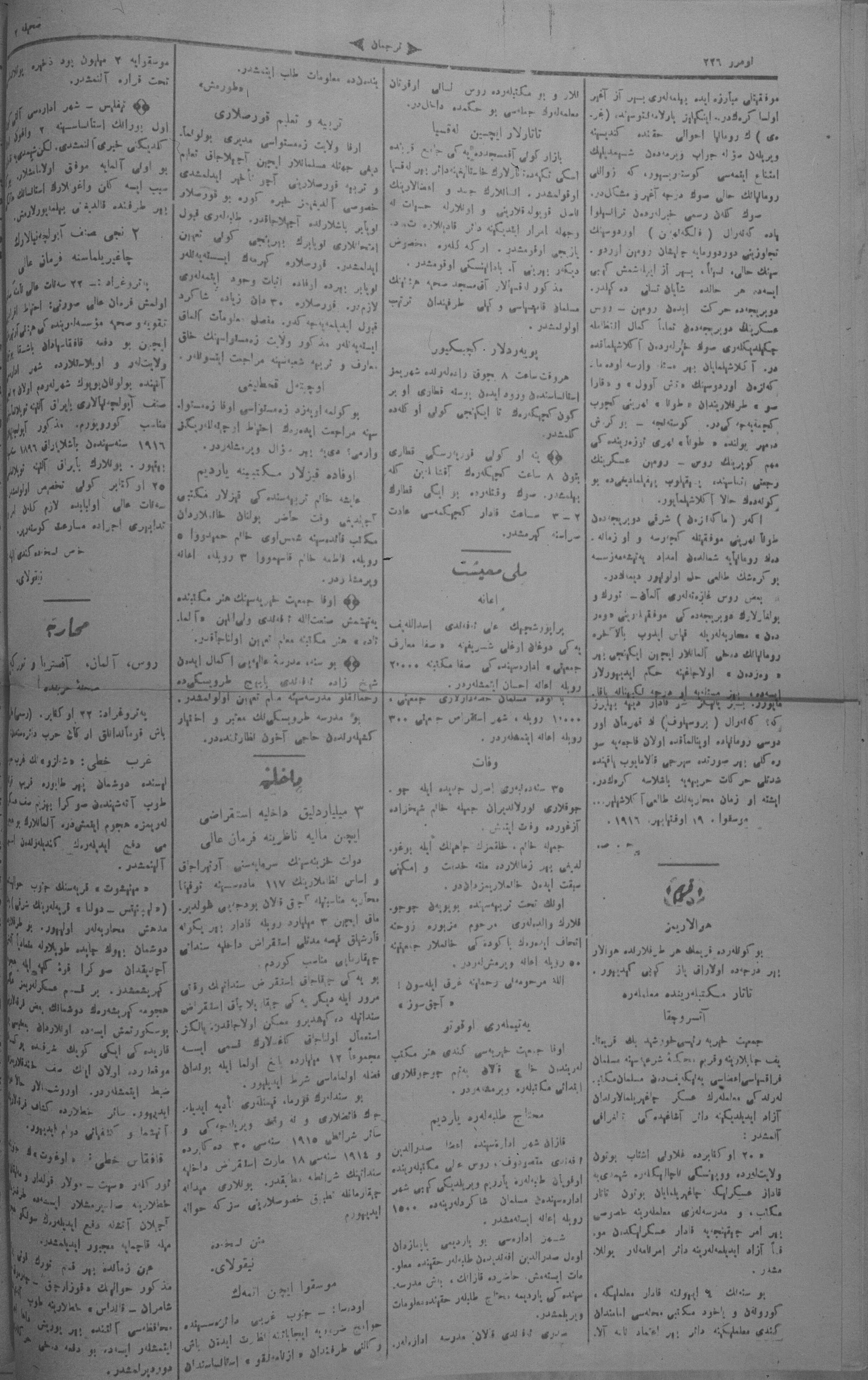 Tercüman, 25 October 1916 Year 34 No 226
