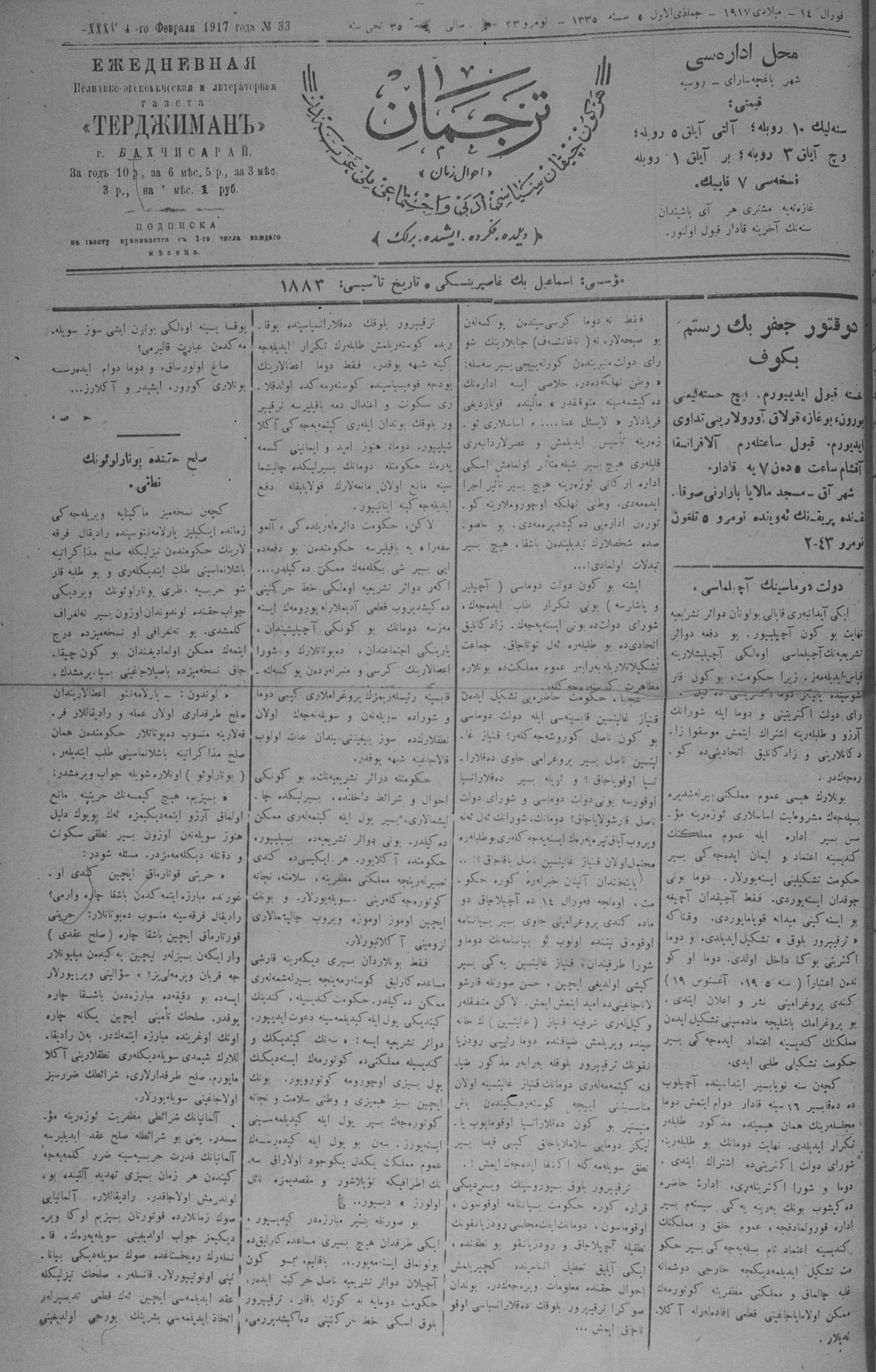 Turkish-Russian newspaper published in Crimea by İsmail Gaspıralı.