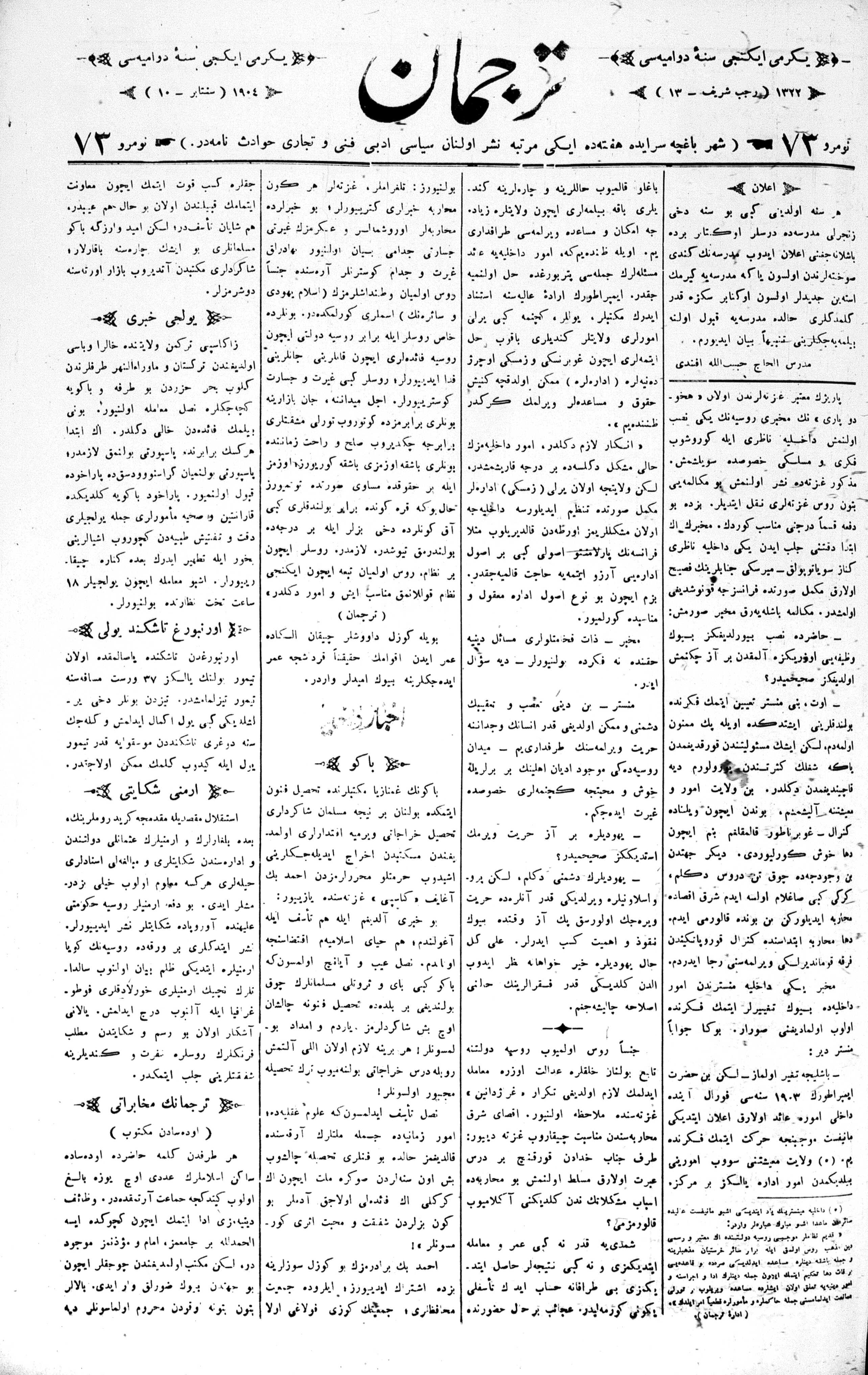 The name of the newspaper changed to Tercüman-ı Ahval-i Zaman in 1905. In 1909, it started to be published under its first name, Tercüman.