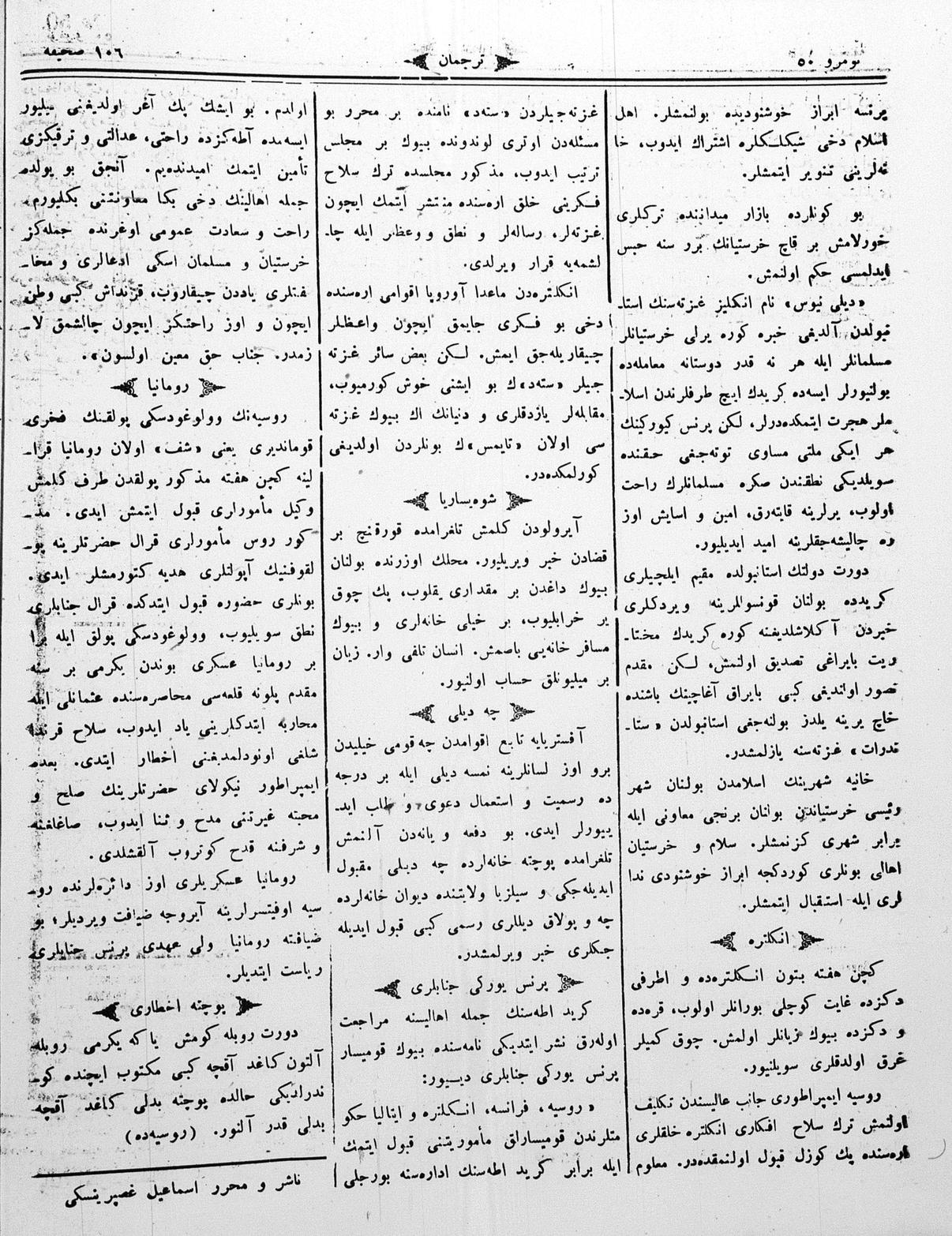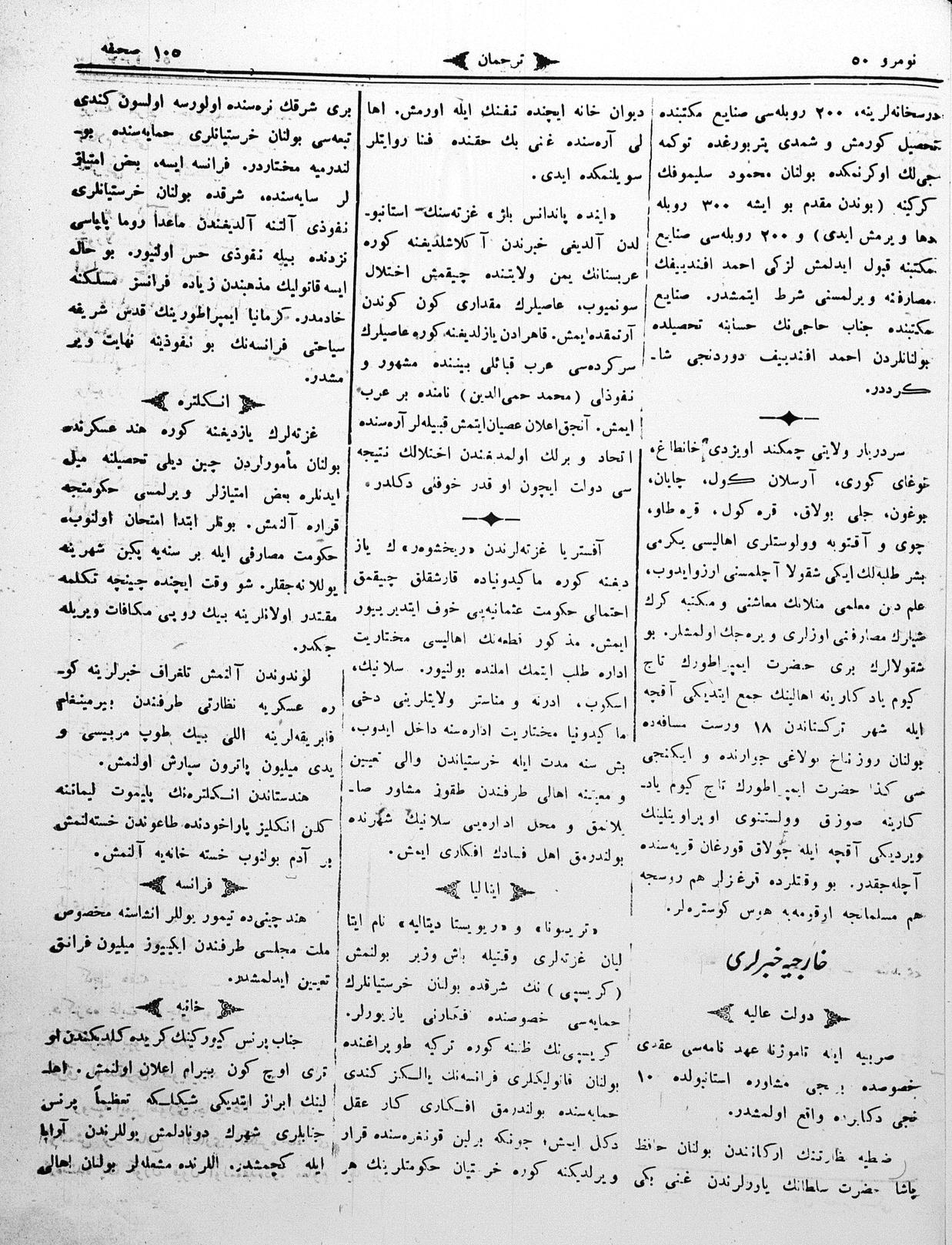 The name of the newspaper changed to Tercüman-ı Ahval-i Zaman in 1905. In 1909, it started to be published under its first name, Tercüman.