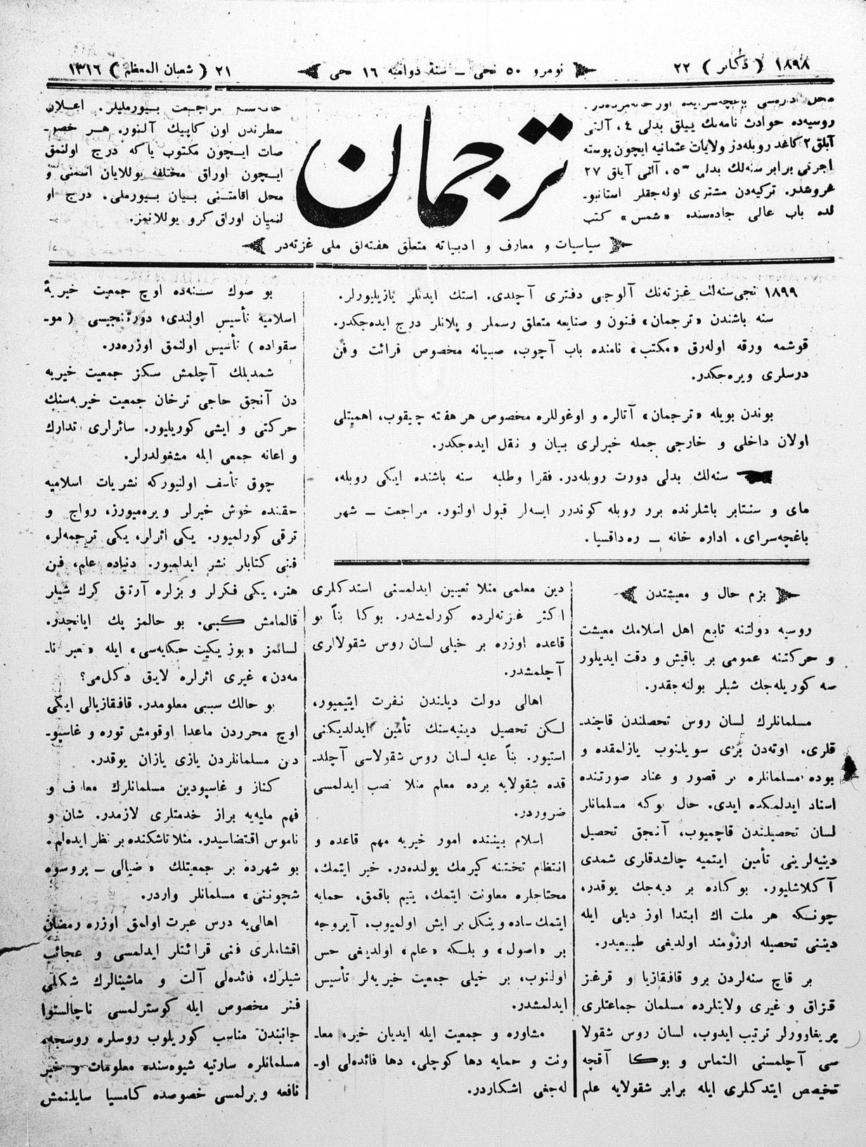 Turkish-Russian newspaper published in Crimea by İsmail Gaspıralı.